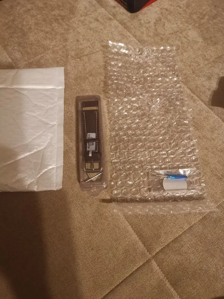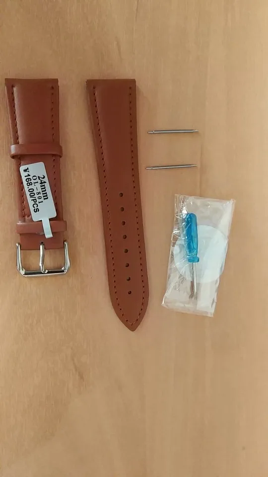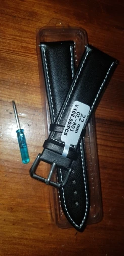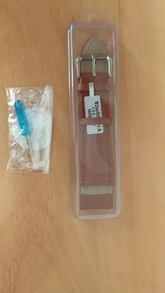 На внешний вид ремешок выглядит хорошо. Вряд ли кожа, но очень похож. Мягкий, приятный на ощупь. Запакован надёжно в пластиковую коробочку, коробочка завернута в пупырку. Есть маленькая отвёртка для замены ремешка. Не знаю, идёт в комплекте или в подарок. Пришел за месяц в сборной посылке. Сколько прослужит, посмотрим. Пишут в отзывах, что не долго. Но все равно заказала.