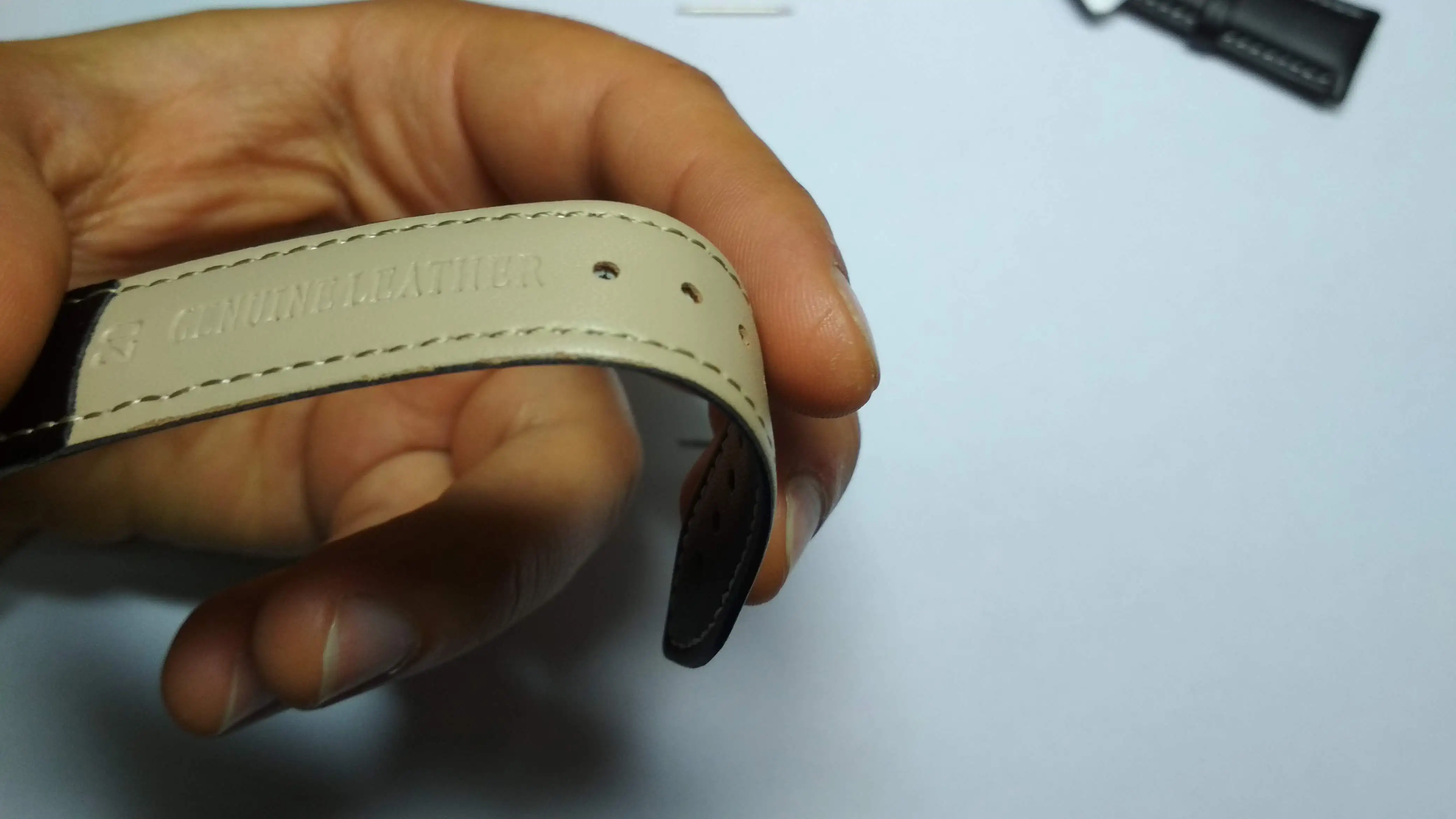 Заказ отправлен быстро! Пришёл через 3 недели. Всё точно как в описании, отлично упаковано! Запах кожи присутствует. строчка с боку даже чаще, чем на кожанных ремешках продающихся в России. Пока меня всё устраивает. По размеру всё чётко встали на место! Кожа-не кожа посмотрим...