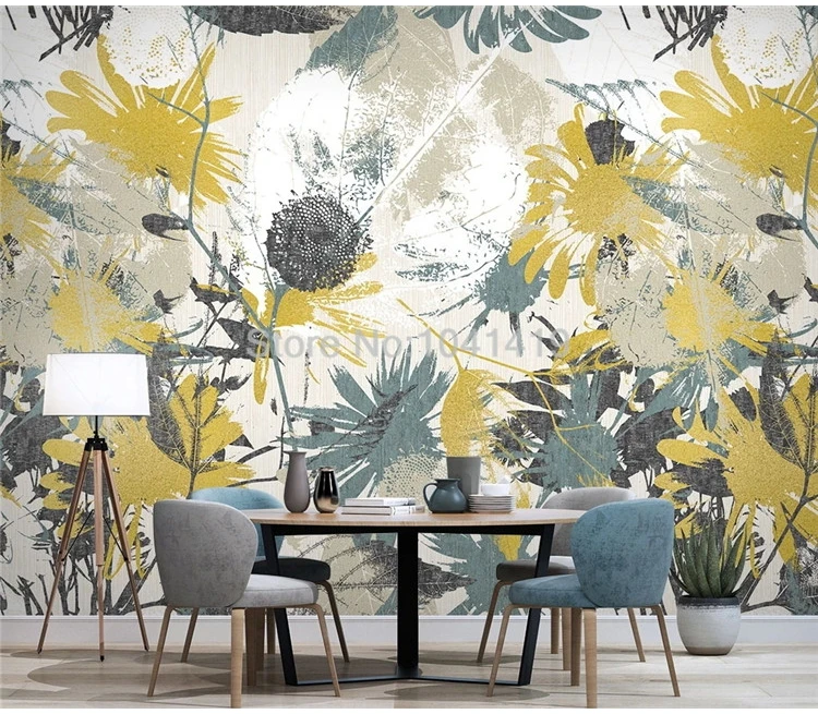 Обои на заказ любого размера, современные абстрактные растительные Цветочные листья Fresco гостиная ТВ диван спальня фон Настенный декор 3 D