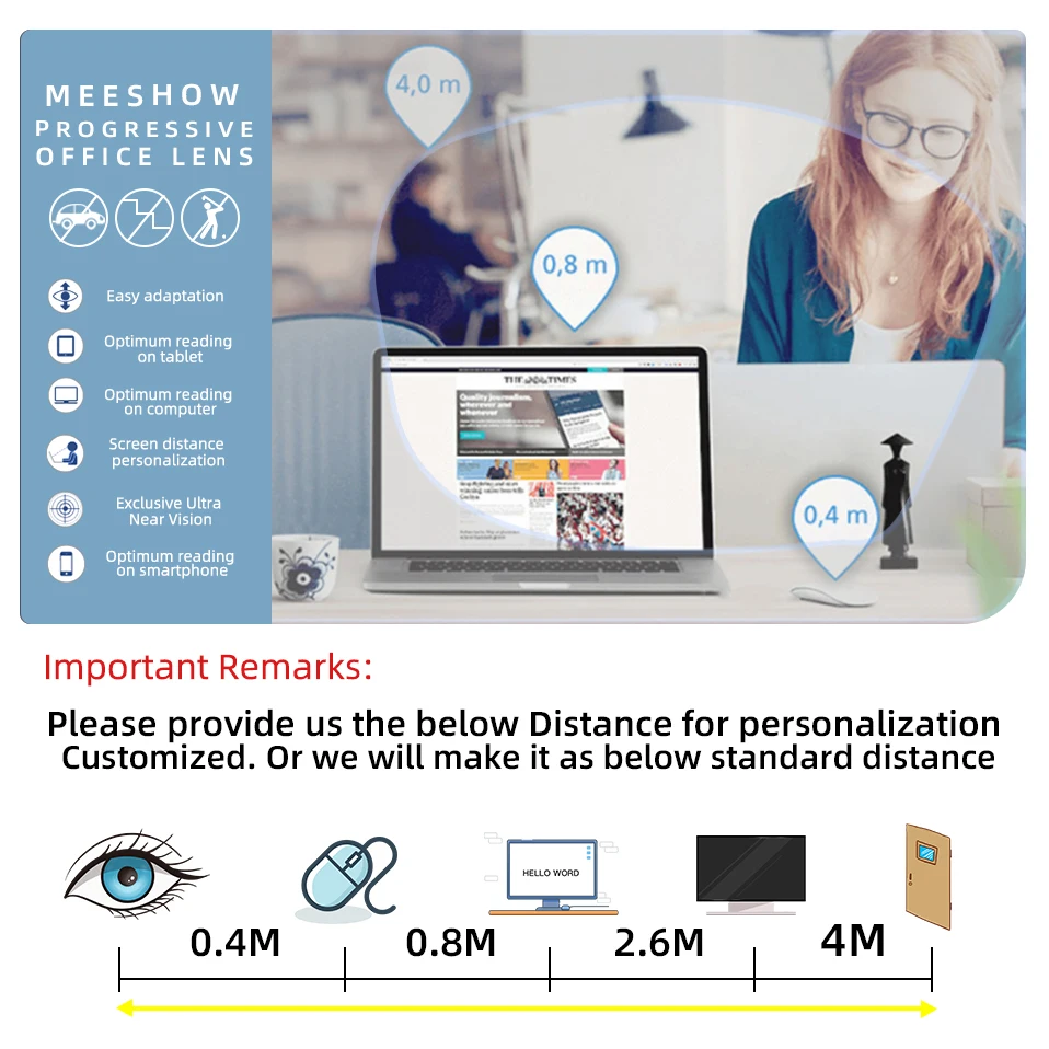 1,56 1,61 1,67 прогрессивные линзы, офисные многофокусные линзы с широким объективом промежуточного расстояния, оптические линзы на заказ для бизнеса