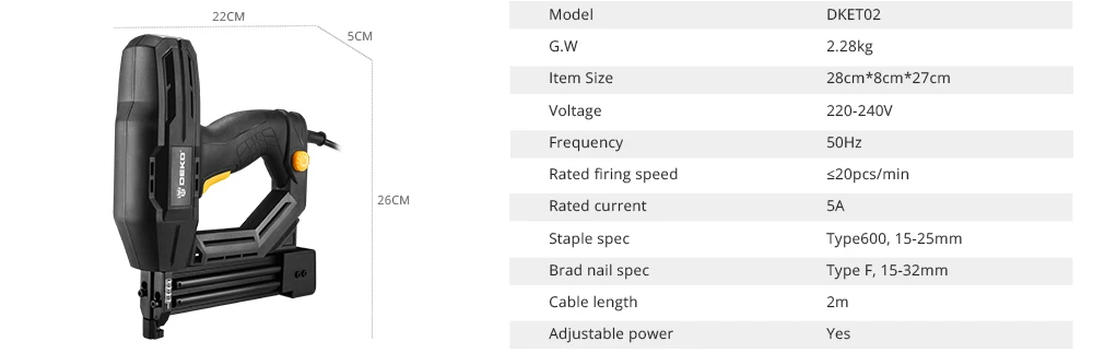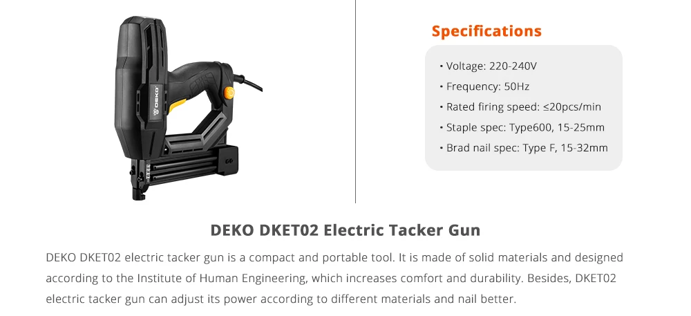 Электрический скобозабивательный степлер DEKO DKET02, штапельный пистолет для мебели со скобами и деревообработкой