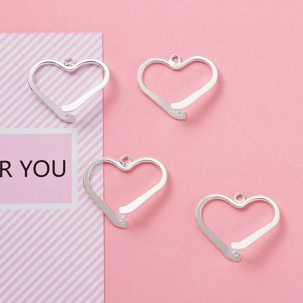 5 шт.лот, латунные зажимы для подвески в форме сердца, зажимы для подвески, застежки, ювелирные изделия, аксессуары, коннектор 22x26 мм; отверстие: 1,2 мм