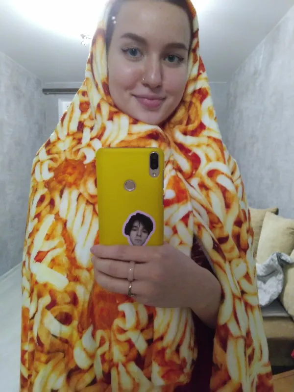 заказала парню на новый год, когда распаковала посылку, хотелось ржать и орать от восторга, это самое лучшее, что я заказывала на али, думала одеяло будет малюсеньким, но оно достаточно нормальное, человеку под ним можно спать, материал офигенно мягкий и теплый, заказывайте, точно не пожалеете!! Фотка рядом с 10-и килограммовым котом, подушка реально хорошего размера и на ней удобно и мягко лежать, даже если внутри нет пледа.