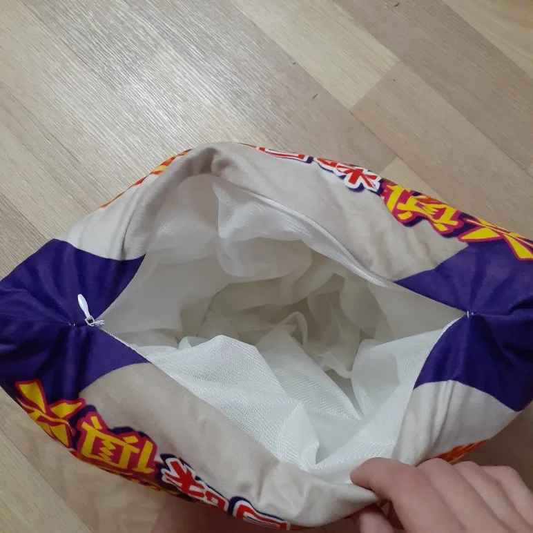 Доставка сравнительно быстрая. Качество нормальное. Кое где торчали белые нитки, особенно по углам подушки. Рядом с молнией какой то полураспустившийся шов. В целом ничего. Нитки обрезала, надеюсь подушка от этого не распустится. Пледик внутри не очень большой, прямоугольной формы с небольшим искусственным мехом с изнанки. Качество печати хорошее. Запаха никакого нет. В целом я довольна.