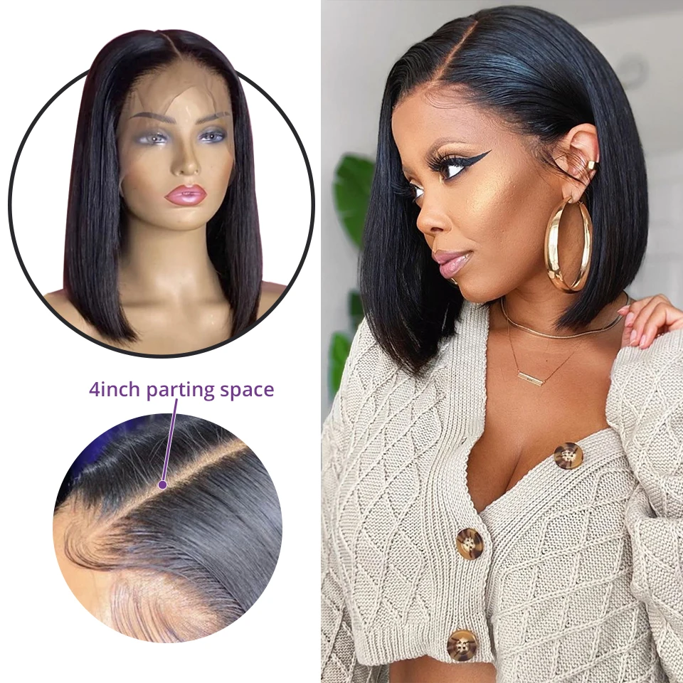 Бразильские прямые волосы 13*4, Короткие парики из человеческих волос