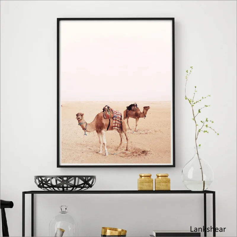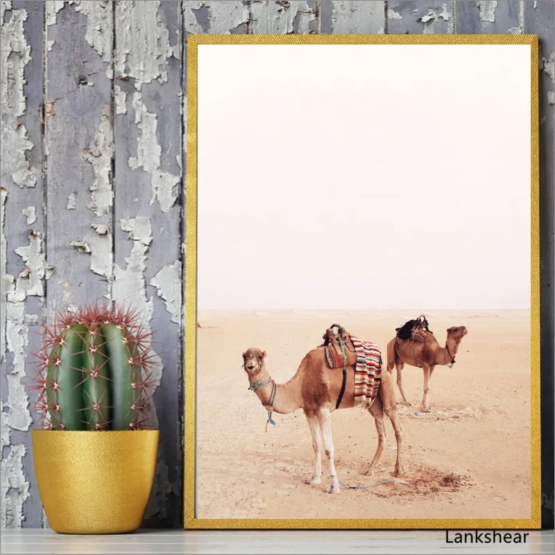 Пустынный пейзаж верблюжья Художественная печать и постер настенные...
