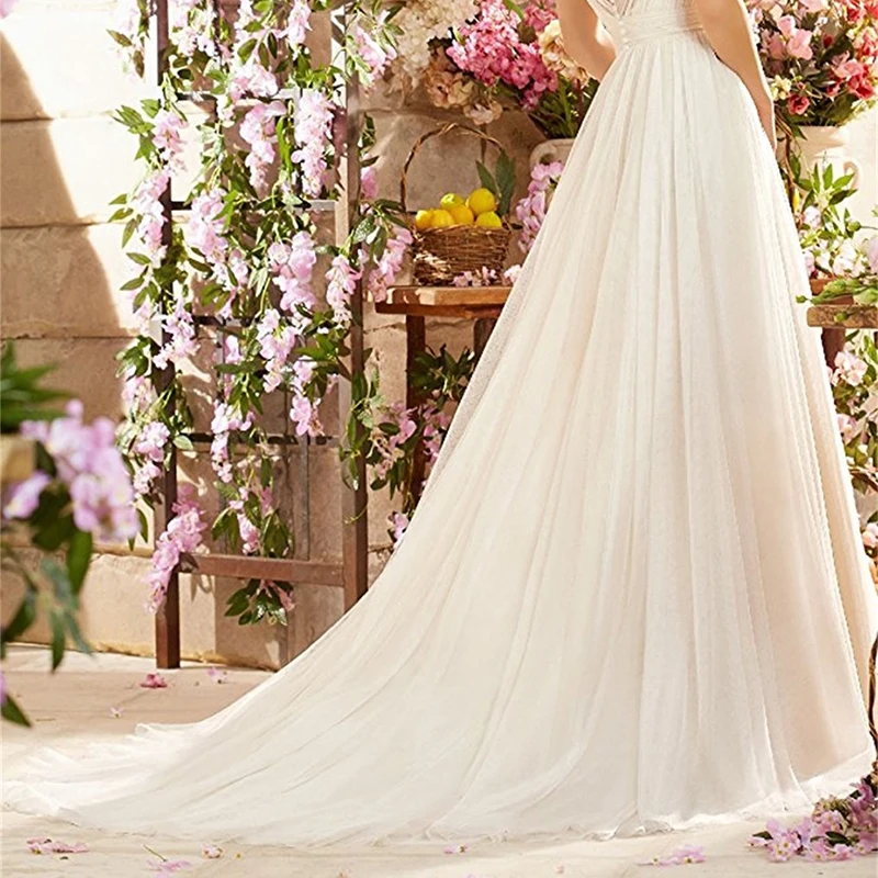 Кружевные свадебные платья с v-образным вырезом, длинные милые элегантные свадебные платья длиной до пола с аппликацией и открытой спиной, свадебные платья трапециевидной формы без рукавов