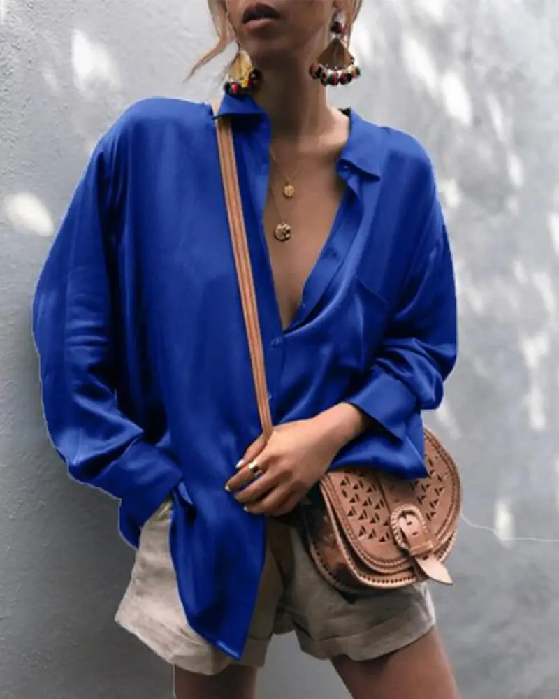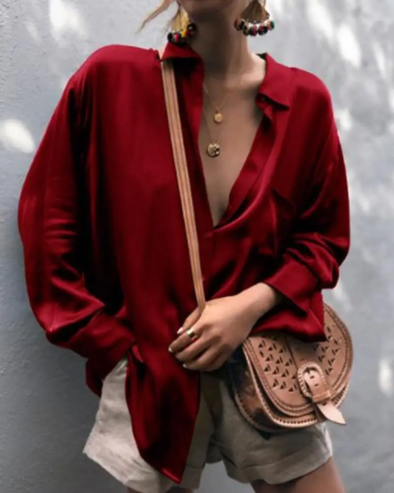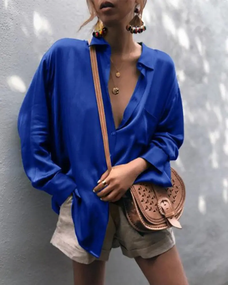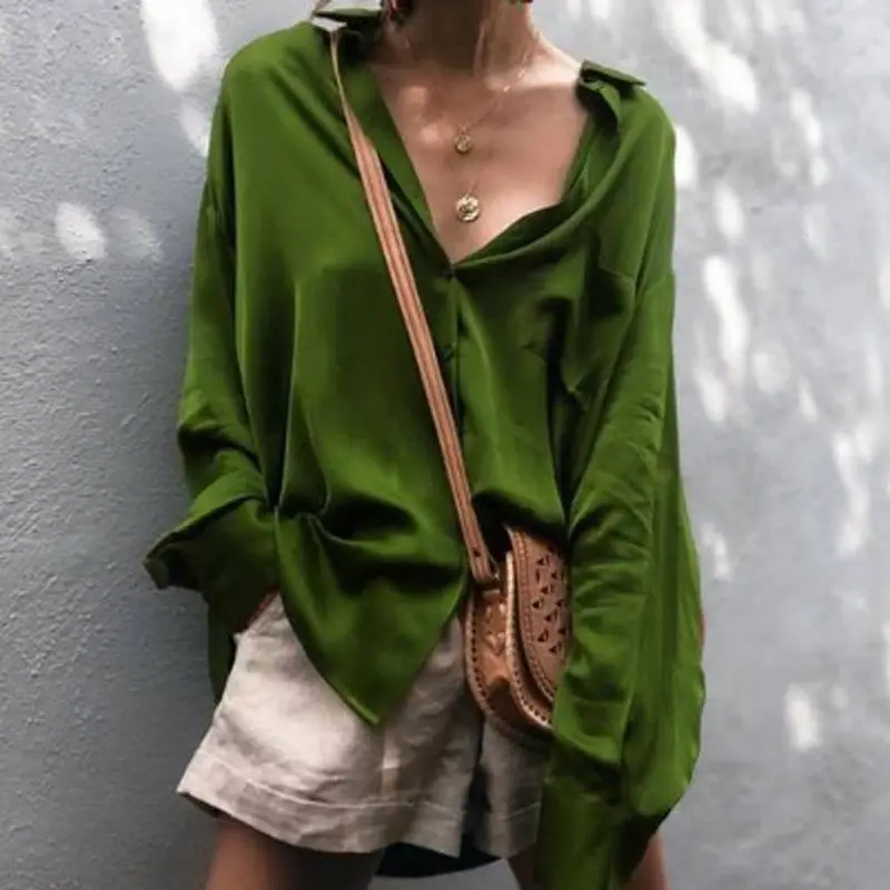 Женская атласная блузка Meihuida, с глубоким V-образным вырезом, с длинным рукавом