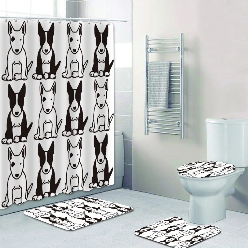 Милый комплект из 4 предметов, занавеска для душа с французским бульдогом для ванной, коврик для ванной, ковер для туалета, занавеска для ванной с щенком, домашний декор