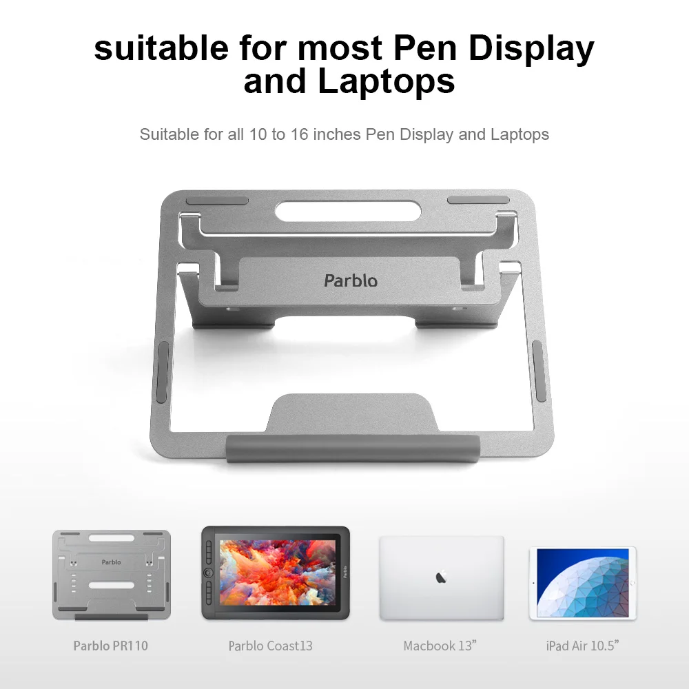Регулируемая подставка для планшета Parblo PR110 с металлическим внешним видом, подходит для планшетного дисплея, iPad и ноутбука, складная подставка