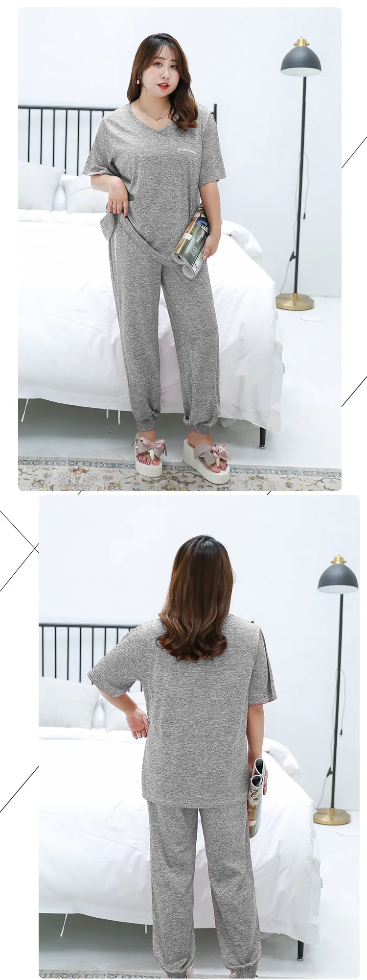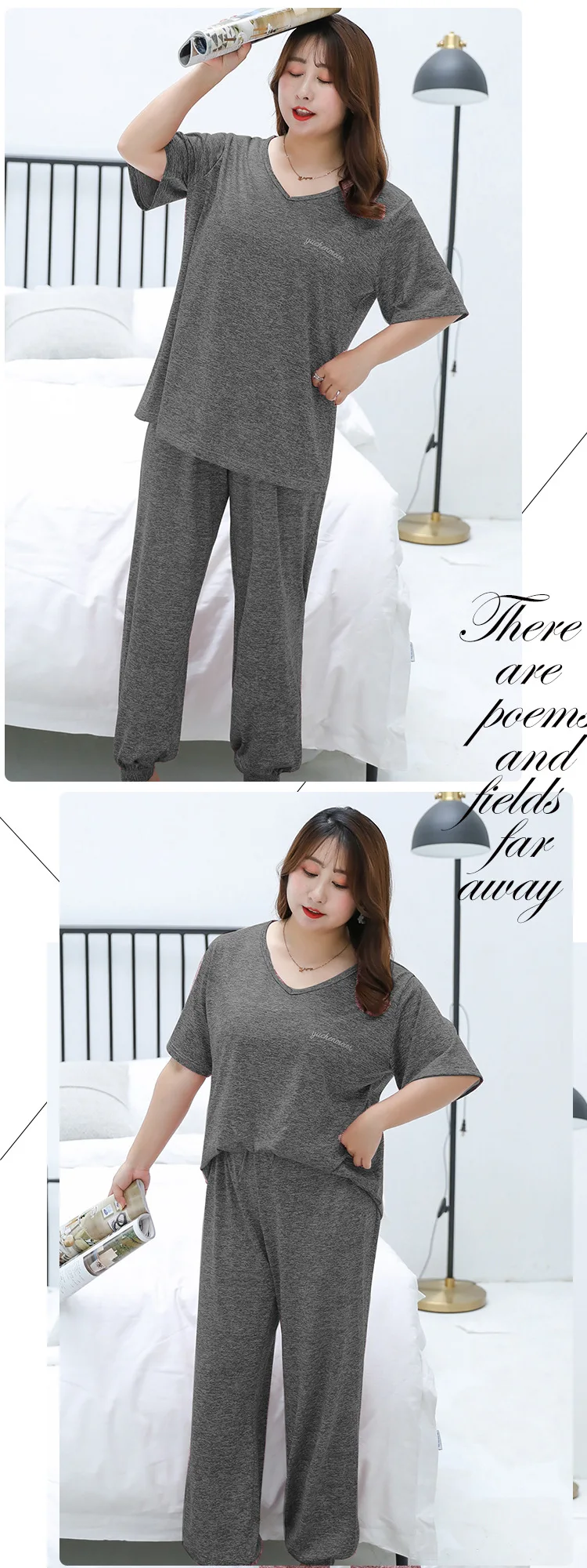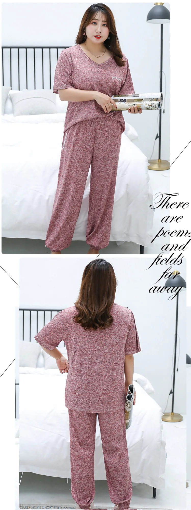 Oversize XL-4XL Women Short Sleeve 2Pieces Pajama Set Cationic Summer SleepwearCasual Nightwear Home Clothes Pijama Pyjama