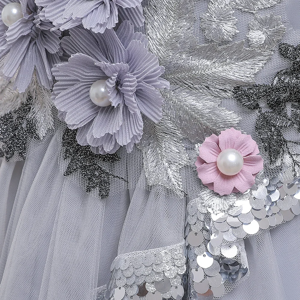 Кружевное платье-пачка с блестками и цветочной аппликацией для дево...