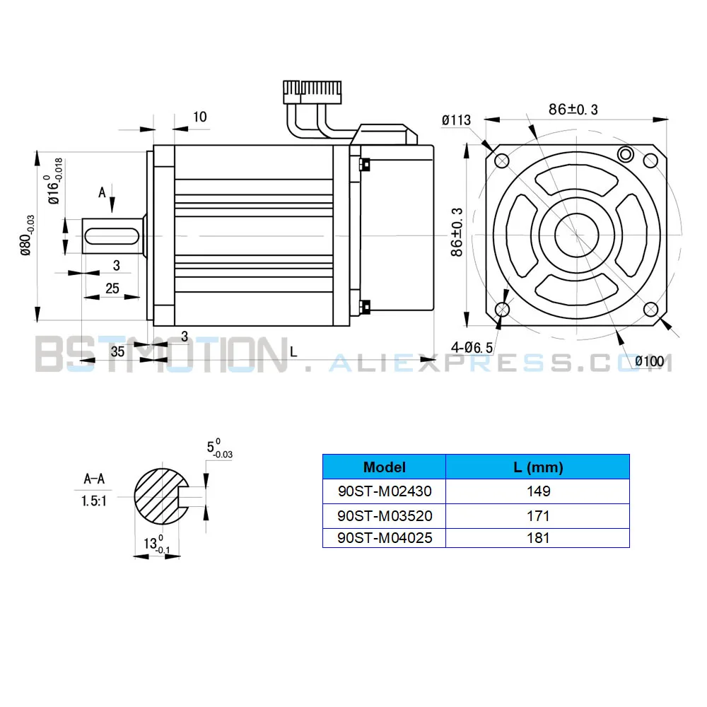 Модель:750W Серводвигатель 90ST-M02430 + комплект привода