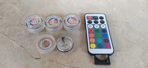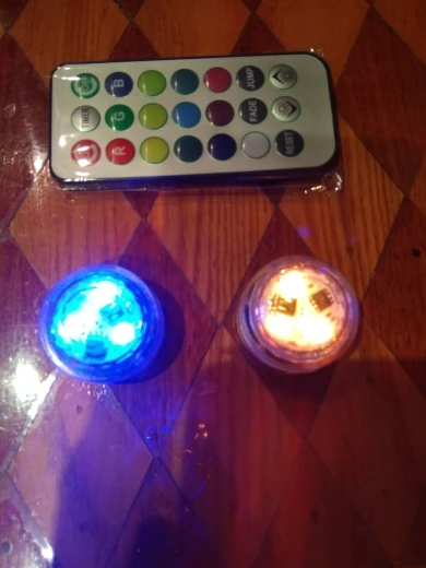 Получила такие два погружные светодиодные светильники с пультом подсветки. Всё пришло с батарейками. Всё работает. Покупала для оформления интерьера. 23.11. заказала, 27.11. только отправили, 10.12. получила. Посылка отслеживалась на всём пути.