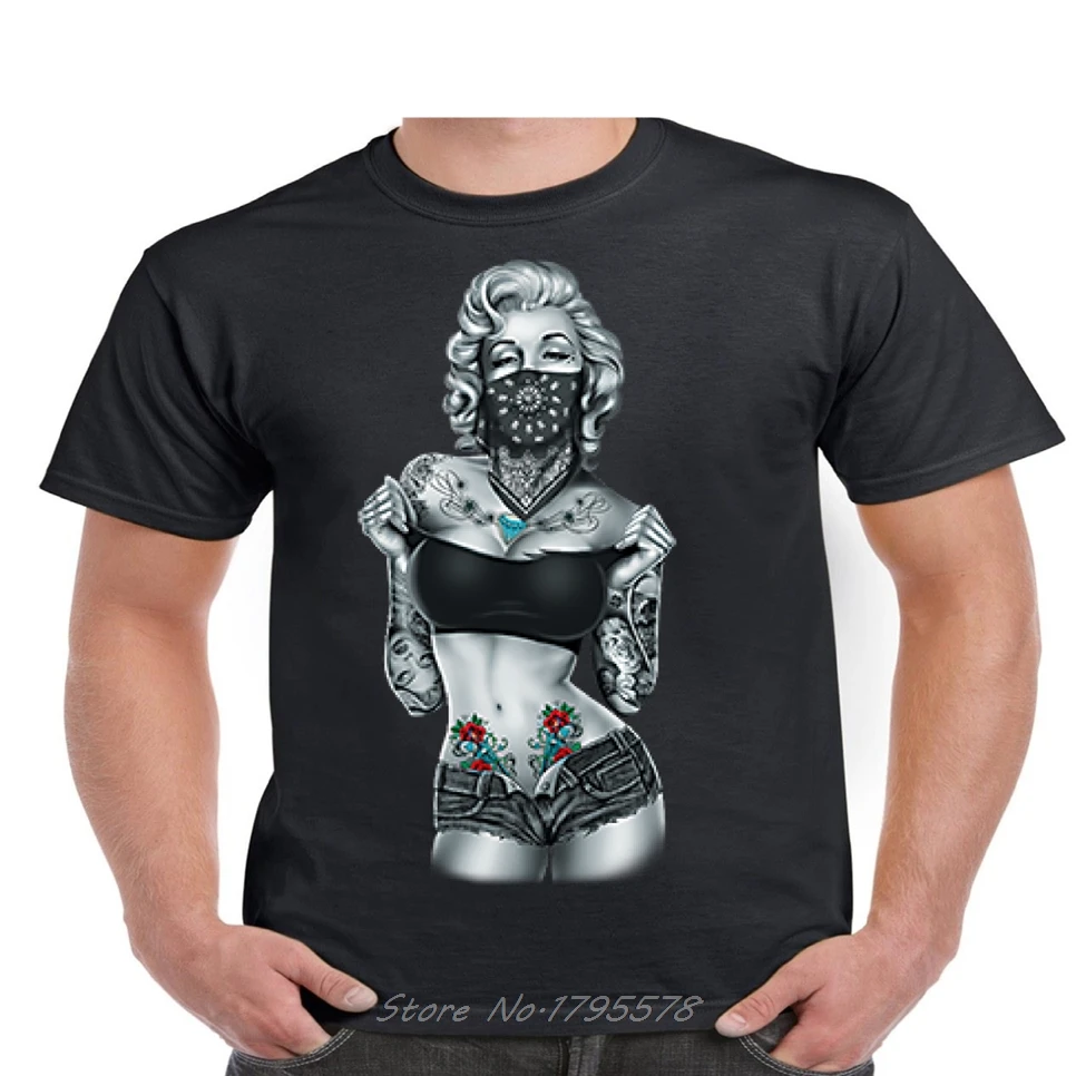 Футболка Marilyn Monroe, топ-труба и шорты, бандана в гангстерском стиле с татуировкой, забавный дизайн, мужские хлопковые футболки, рубашка в стиле Харадзюку