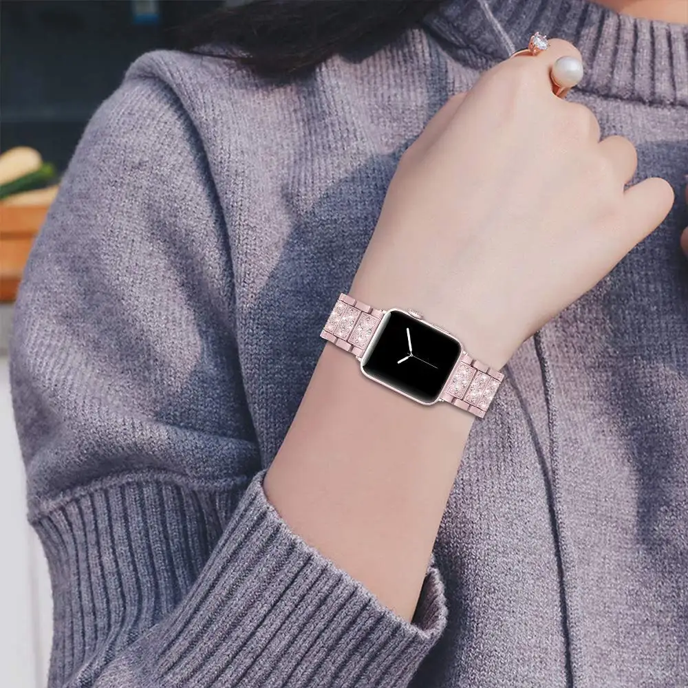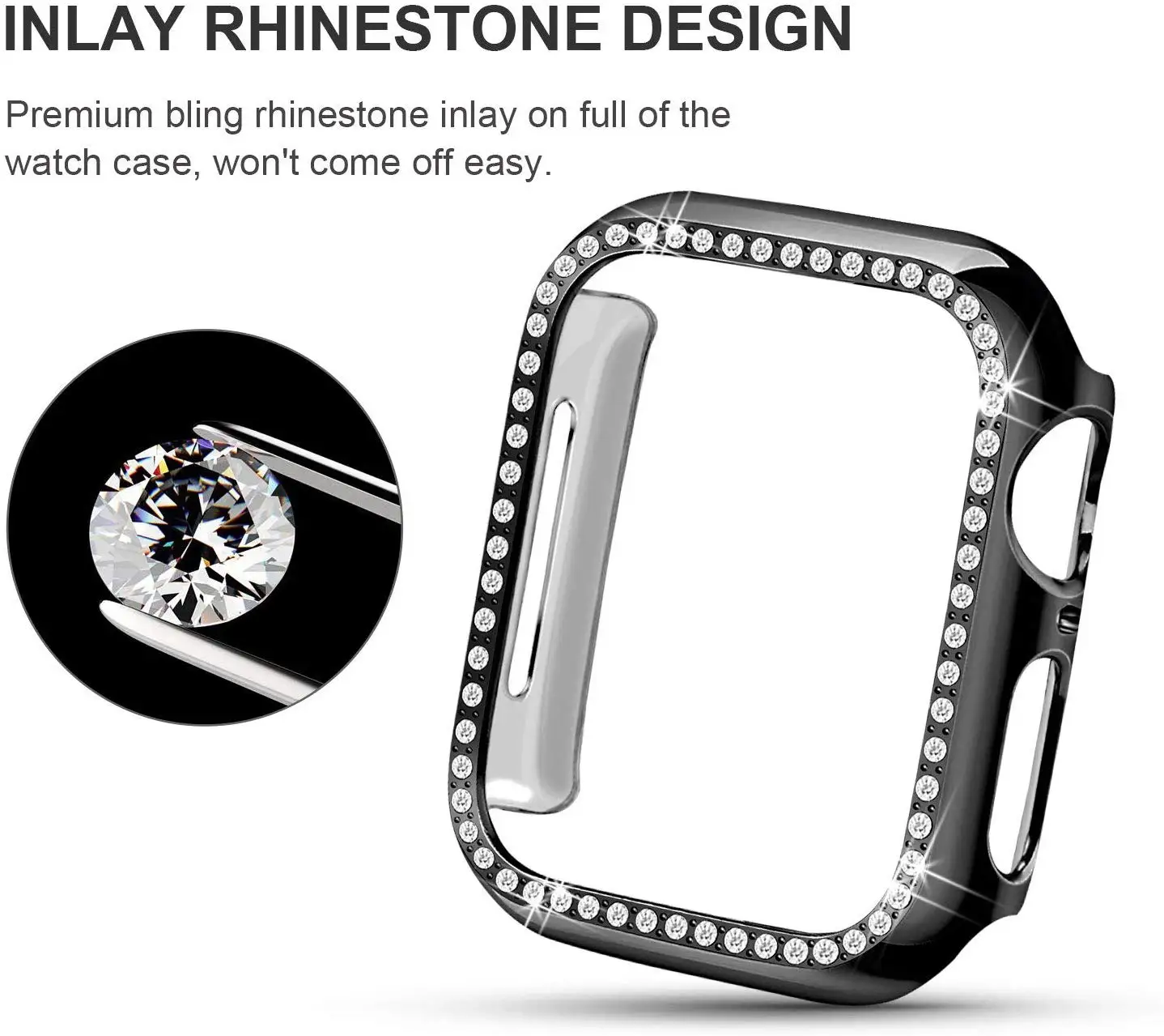 Браслет и чехол для Apple Watch Series 7 6 5 4 SE Band 40 мм 44 мм 41 мм 45 мм, браслет из нержавеющей стали со стразами для Apple Watch 42 мм 38 мм
