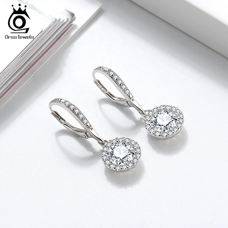 ORSA JEWELS кольцо Изысканный твердой древесины AAA Циркон Серебро 925 длинные свисающие серьги для женщин, ювелирное изделие для ювелирных изделий Свадебная вечеринка подарок по оптовой цене, OSE243