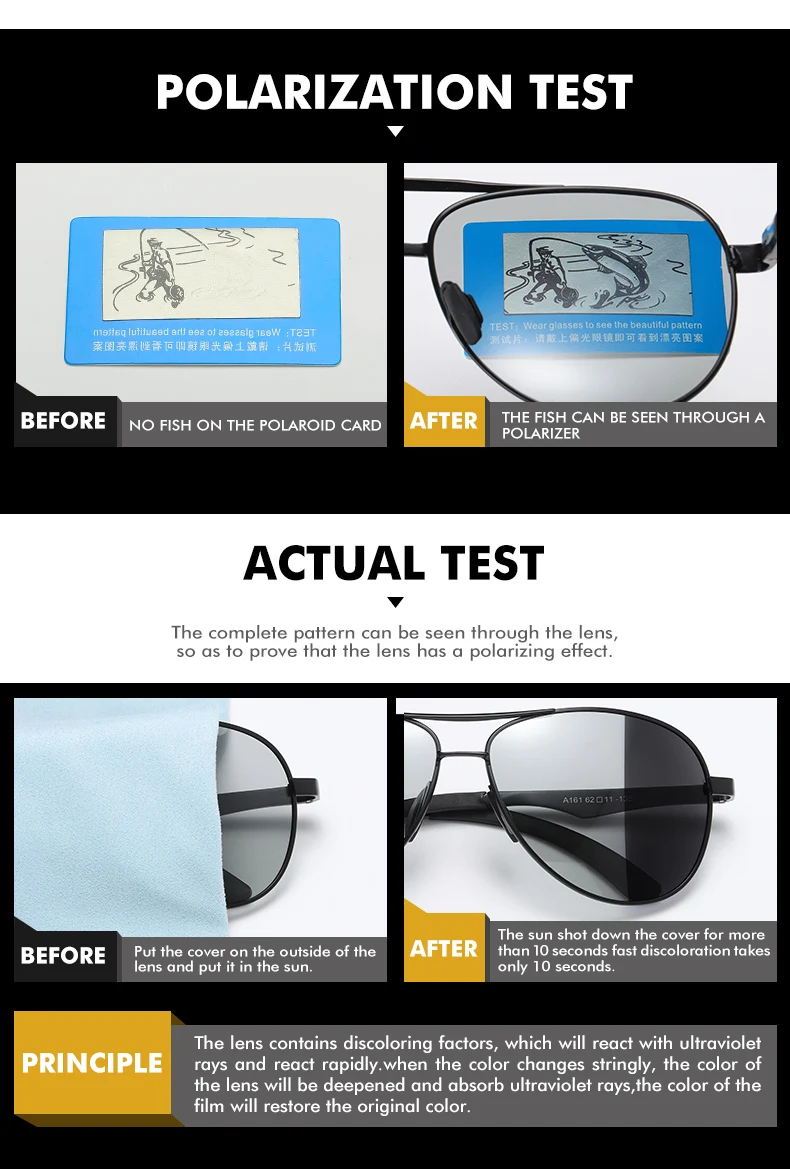 Солнцезащитные очки-авиаторы мужские, фотохромные, поляризационные, для вождения, с антибликовым покрытием
