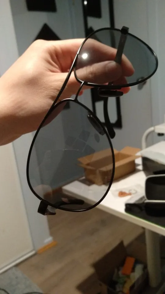 Мне очень нравятся эти солнцезащитные очки, есть именно то, что я хочу! Материал, кажется, хорошего качества. Цвет нюанса очень легкий, поляризационный угол правильный, даже фотокромический эффект присутствует. Солнцезащитные очки идеально подходят для вождения, по крайней мере для меня. В упаковке много предметов, такой чехол и небольшая ткань для протирания... Я могу порекомендовать товар и товар, я буду покупать снова у этого продавца.