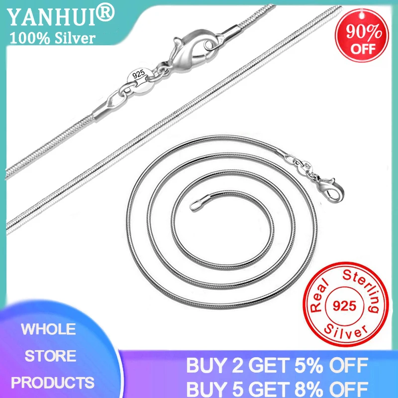 YANHUI полный Размеры 16-38 дюймов в классическом стиле; Основная цепь Тонкий 1 мм 925 стерлингового серебра омара застежка ожерелье цепочка Ювелирные украшения для женщин