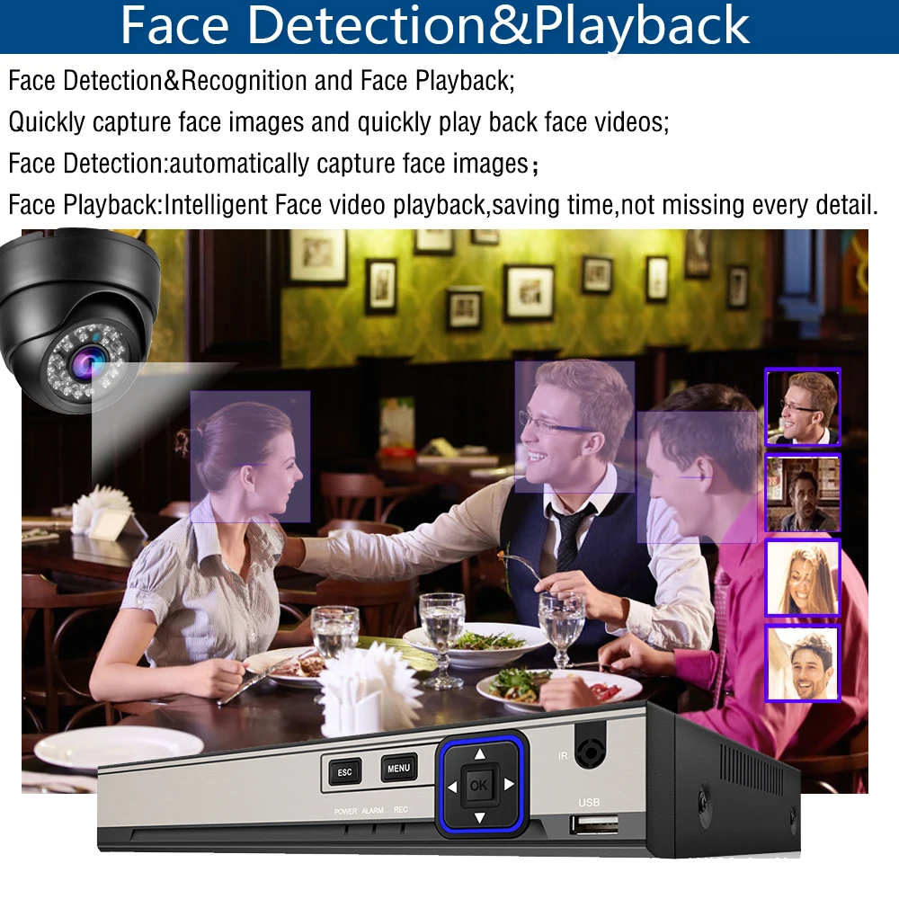 Система видеонаблюдения POE RJ45 NVR 8CH Xmeye, система распознавания лиц, 5 Мп InOutdoor POE IP купольная камера, комплекты инфракрасного ночного видеонаблюдения
