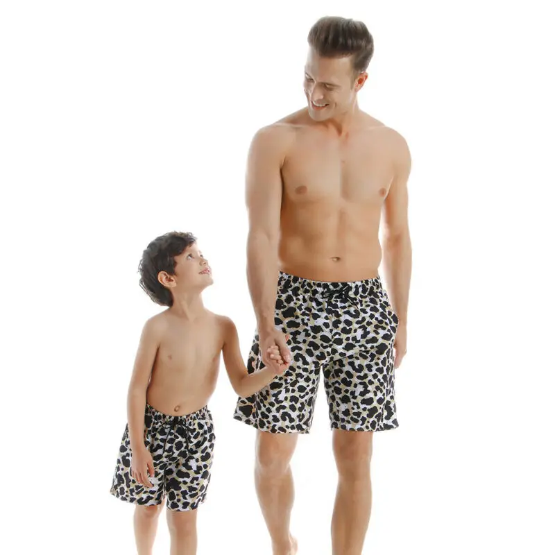 Новое поступление, семейные парные летние мужские и детские леопардовые трусы для Отца и Сына, купальный костюм, комплект для купания, наряды