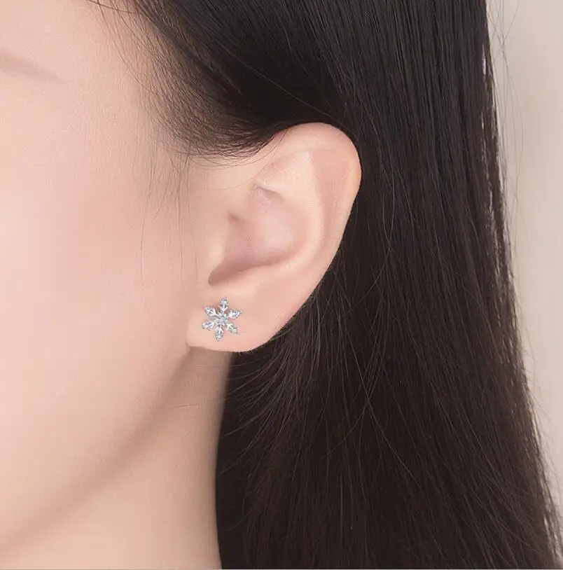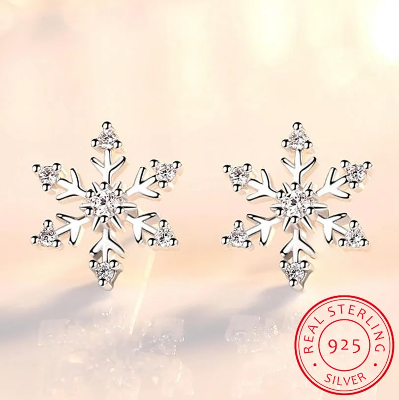 Роскошные циркониевая Снежинка серьги-гвоздики для женщин из стерлингового серебра 925 пробы Серьги-гвоздики S-E582