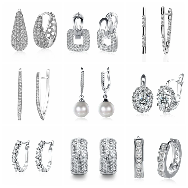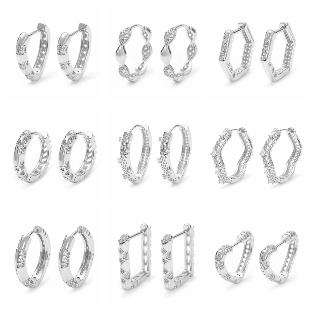 Прямая поставкаоптовая продажа 2020 новые уникальные серебряные серьги с кристаллами ААА кубического циркония геометрические обручи серьги для женщин