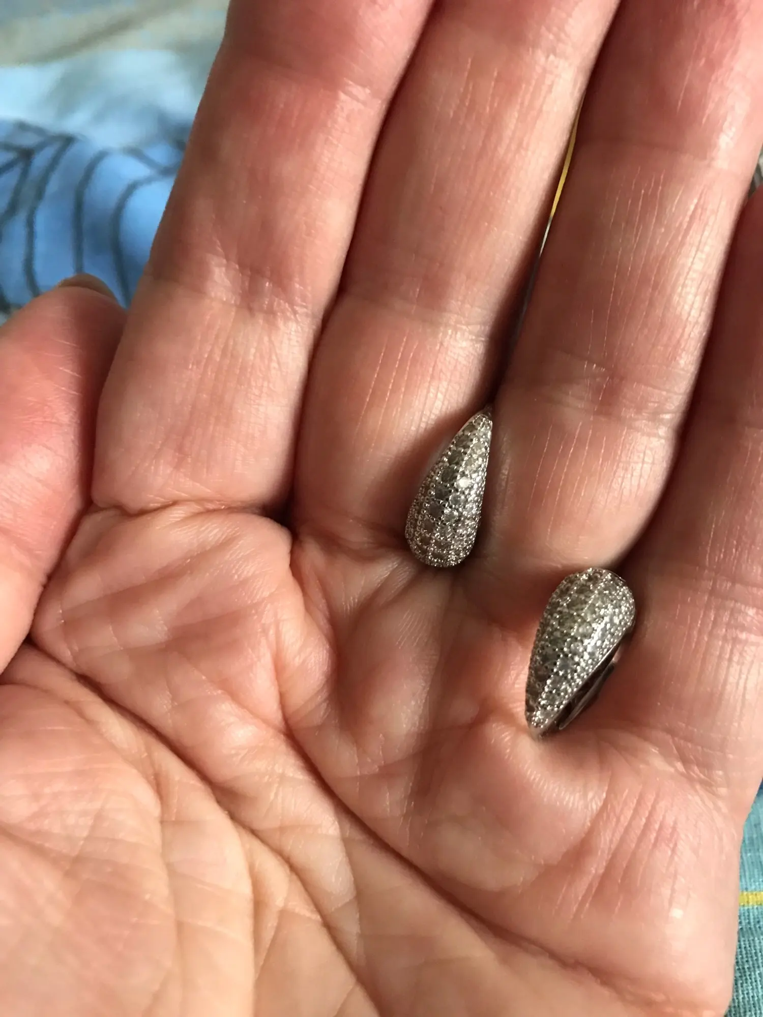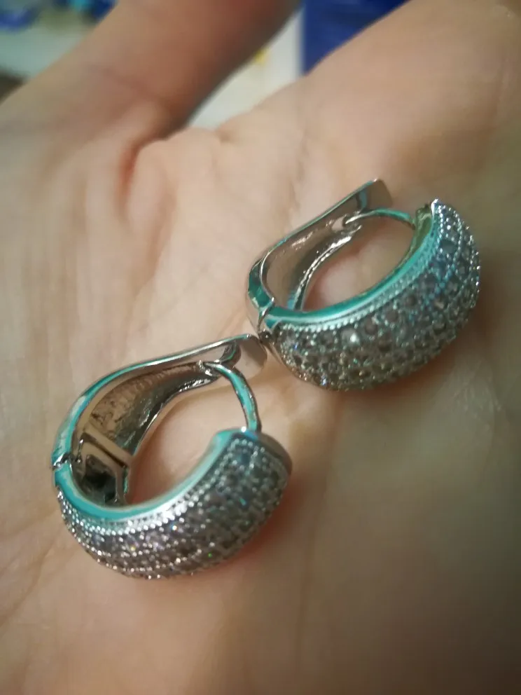 все стразы на месте, сережки как на фото, чуть подправила застёжку, так как хлипковато держала.