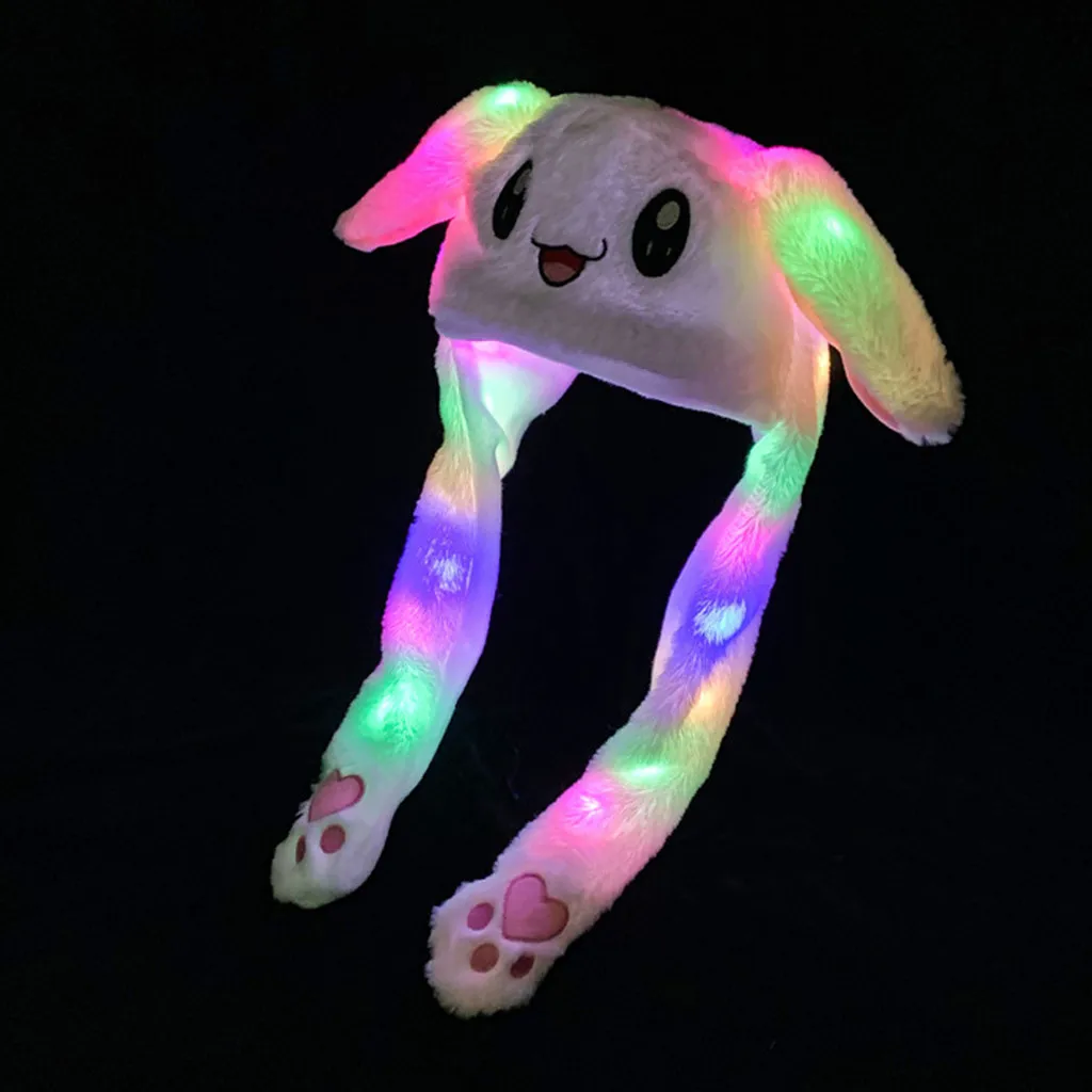 Шапка с подвижными ушками кролика, плюшевая шапка с подсветкой, под...