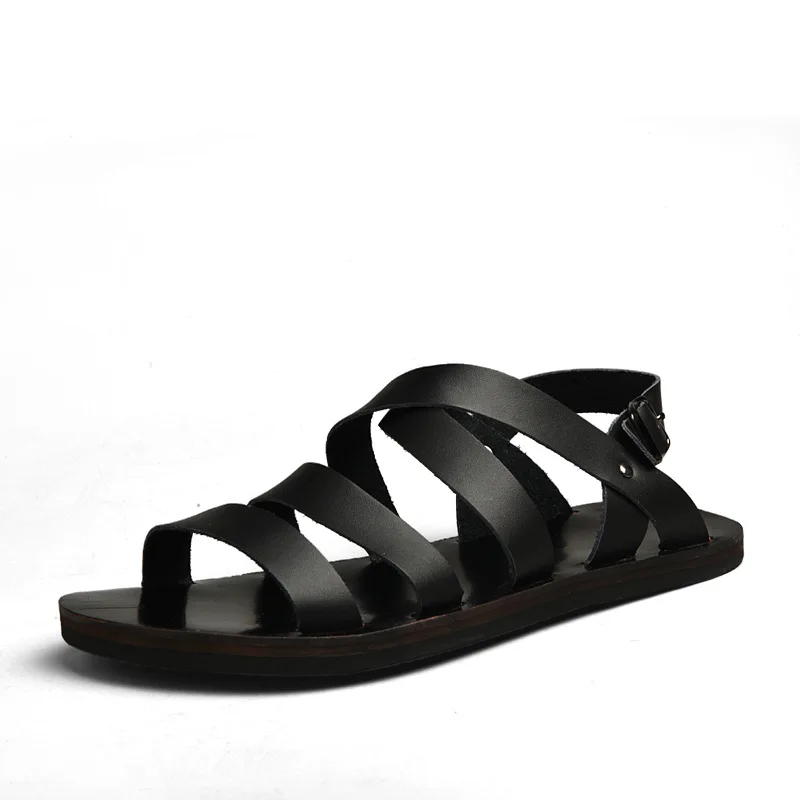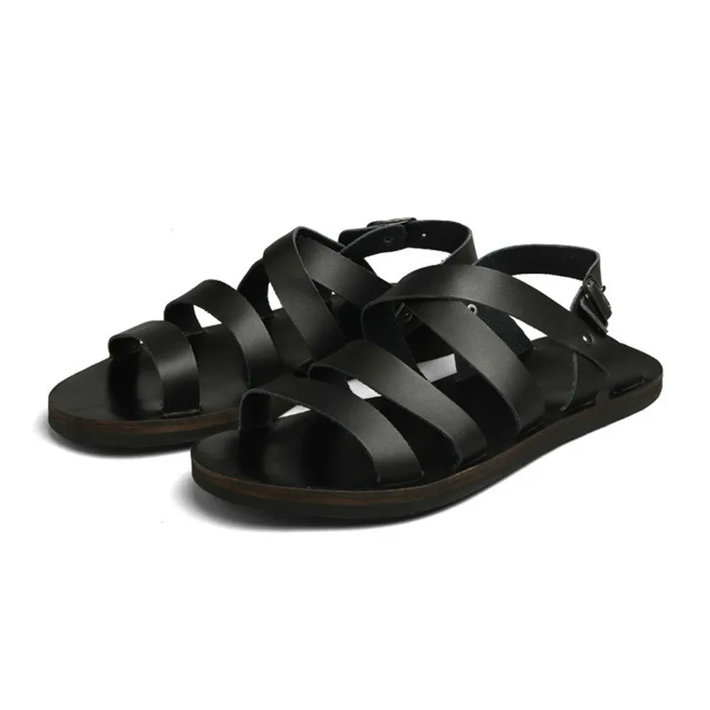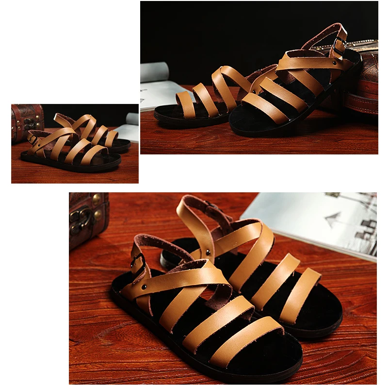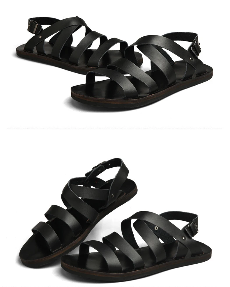 Мужские Нескользящие сандалии на плоской резиновой подошве, из натуральной кожи