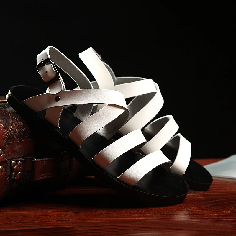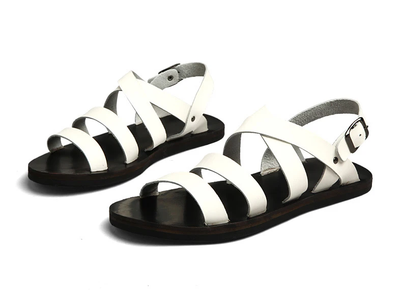 Мужские сандалии из коровьей кожи, черные или Белые пляжные сандали...