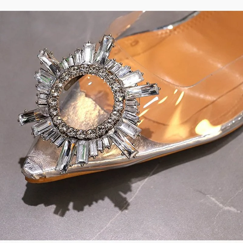 Стразы, высокий каблук, ПВХ, прозрачные каблуки, женские туфли-лодочки, Сексуальные Металлические острые прозрачные каблуки, женская обувь, летние сандалии размера плюс 42