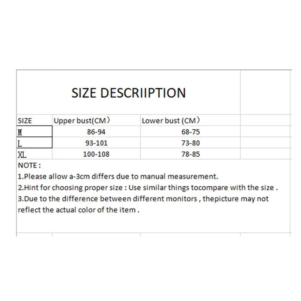 Особенности:1. Удобство: модальный материал, добавленный к ткани с новейшей технологией, обеспечивает мягкое и маслянистое ощущение бюстгальтера2. Удобно: с одной стороны, регулируемые плечевые ремни, застежка на крючок и глаза. Легко разместить чашки для удобного кормления3. Воздухопроницаемость: Благодаря элегантному дизайну с v-образным вырезом ваша грудь становится более дышащей, она обеспечивает комфорт одновременно. Уникальная подкладка пуш-ап делает грудь более привлекательной, обеспечивая достаточную поддержку4. Бесшовные: боковая вспышка, супер поддержка; Съемные формованные поролоновые чашки, легкие в размере, 100% дышащие.5. Хорошее качество: Этот продукт изготовлен из высококачественных материалов, тонкое мастерство, очень хорошее качество и длительный срок службы.Описание:Это нижнее белье без оправы, удобное и дышащее, может поддерживать грудь и держать форму груди трехмерной.Характеристики:Размер: под грудьюL 80-88 смM 90-100 смXL 100-110 смТкань: 90% нейлон + 10% спандексПодходящий Пол: ЖенскийПосылка включает в себя:1 шт. * нижнее белье без оправыПримечания:1. Допускается погрешность в 0-1 дюйм из-за ручного измерения. Спасибо за понимание.2. Мониторы не калибруются так же, цвет товара, отображаемый на фотографиях, может немного отличаться от реального объекта.