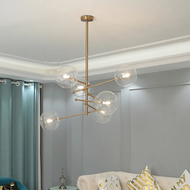 Люстра со стеклянными шариками, 6 лампочек, прозрачное стекло, пузы...
