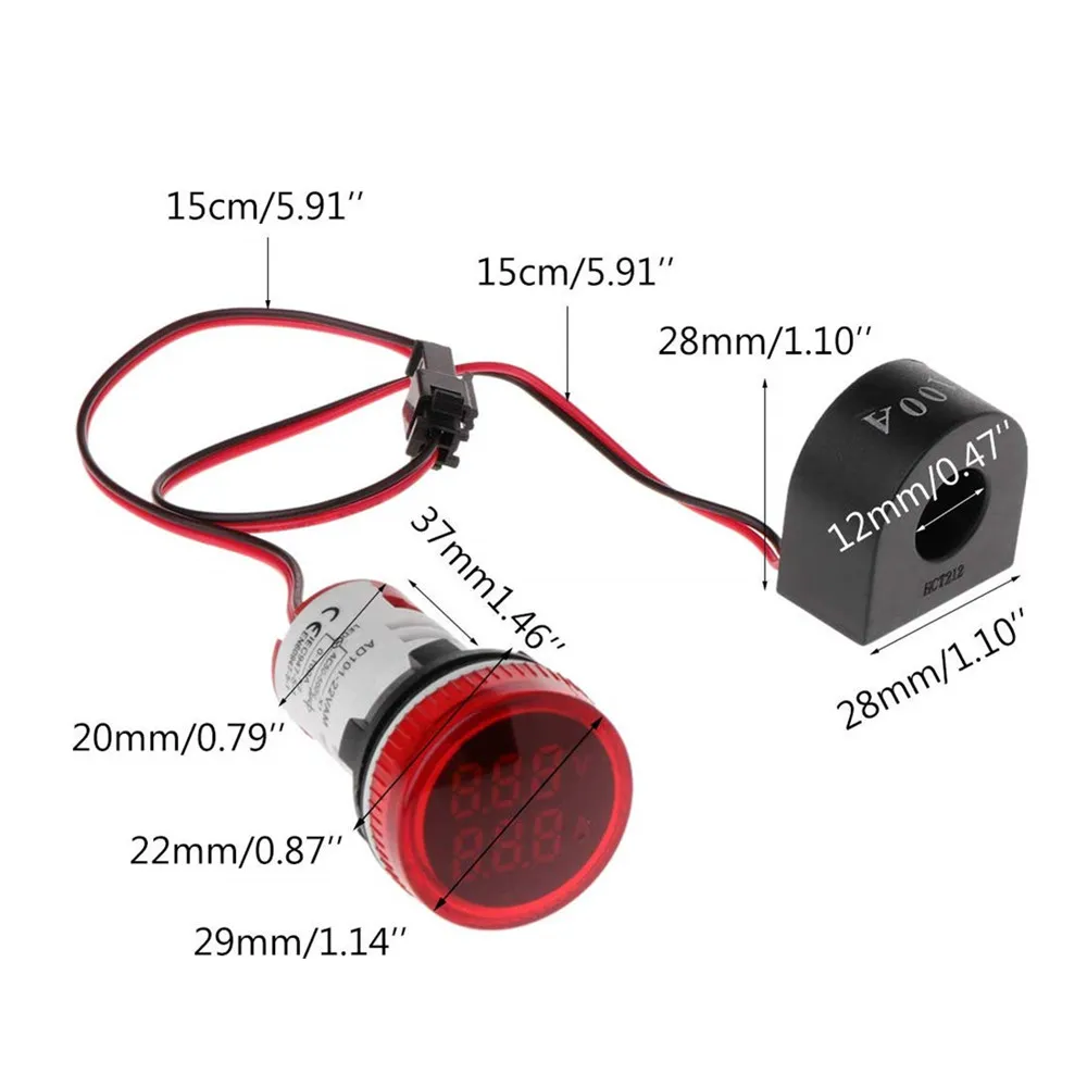 Цифровой вольтметр-амперметр, вольтметр, Гц, герц, частотомер, 22 мм, напряжение переменного тока, светодиодный индикатор