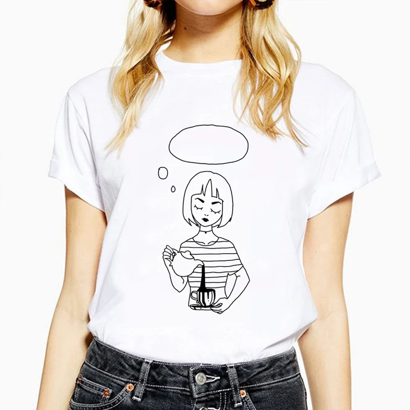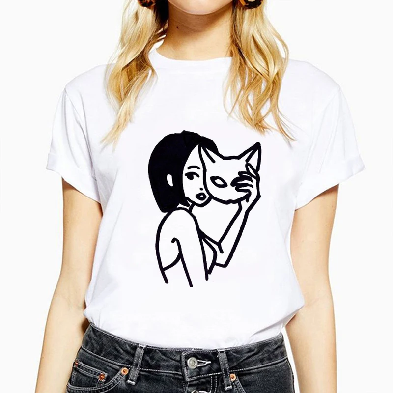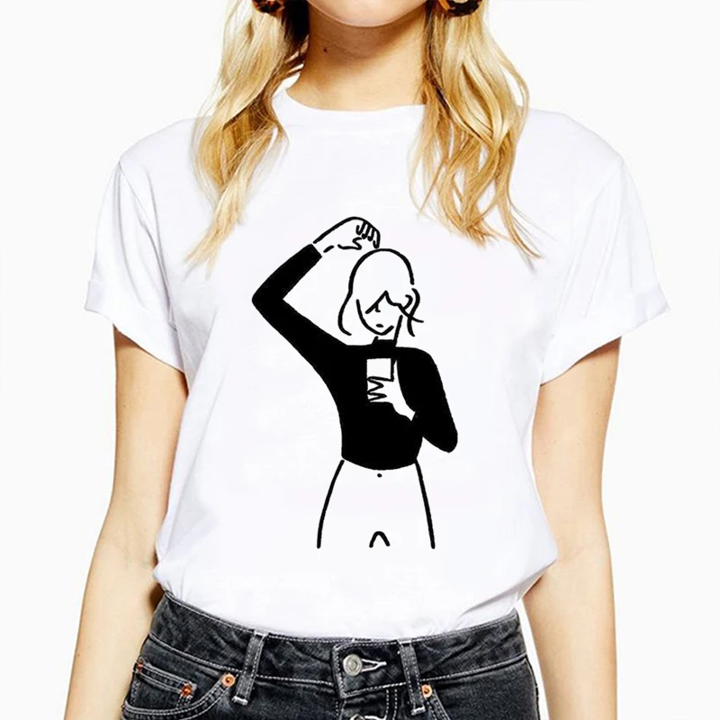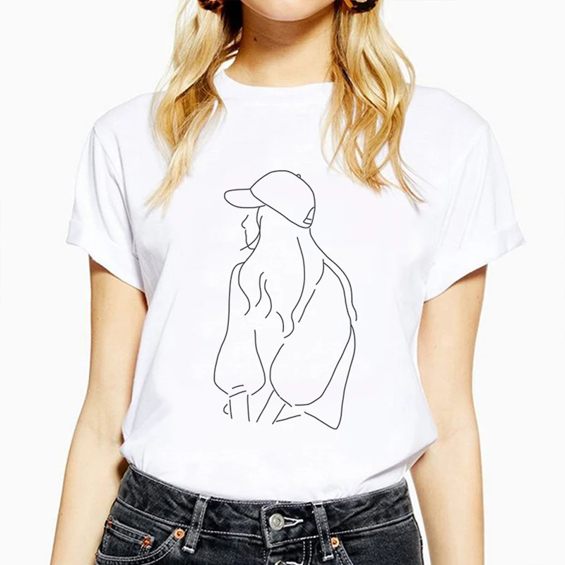 Футболка женская с коротким рукавом, элегантная простая повседневная футболка с абстрактным рисунком и коротким рукавом, креативный топ в Корейском стиле, 2020