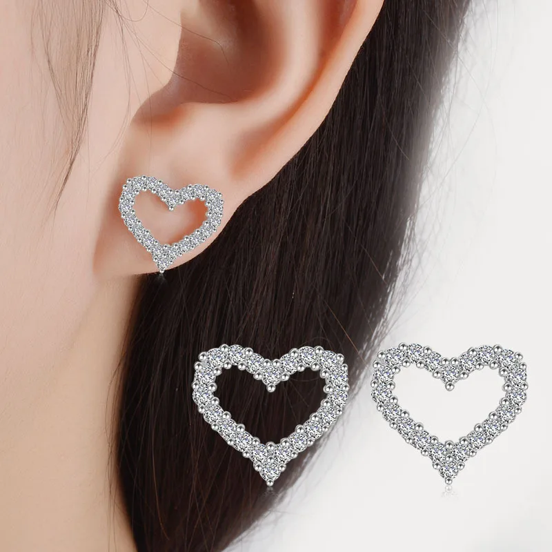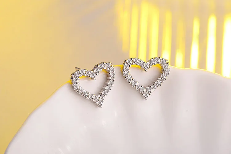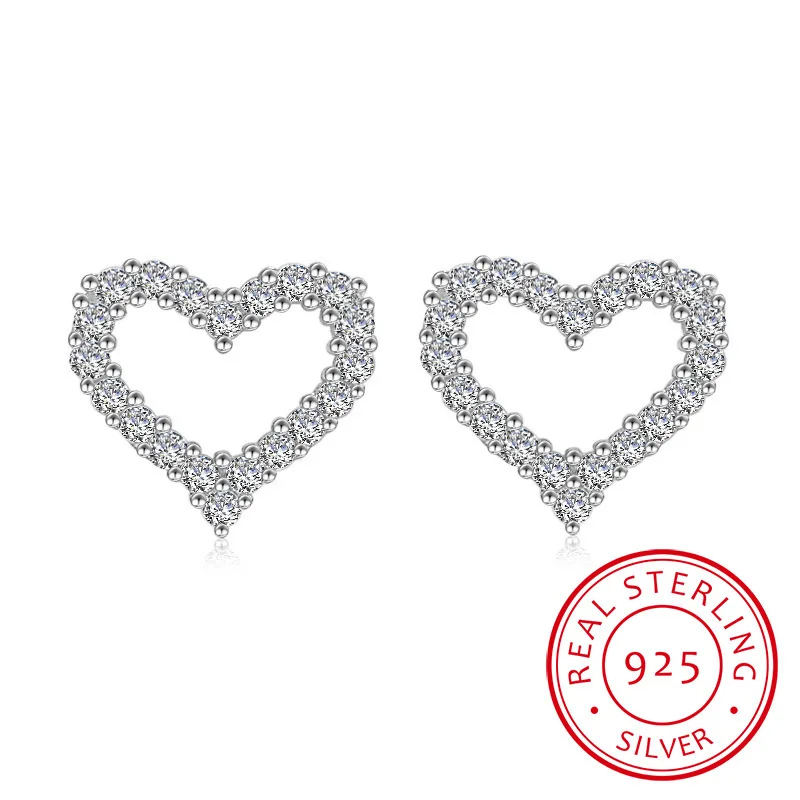 Классические серьги-гвоздики из стерлингового серебра 925 пробы с блестящим цирконием в форме сердца для женщин oorbellen S-E360