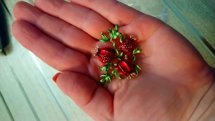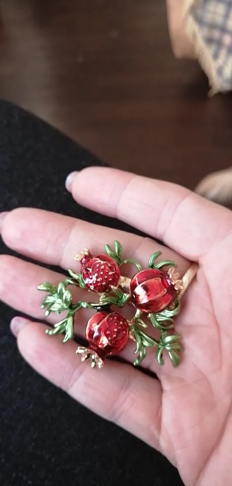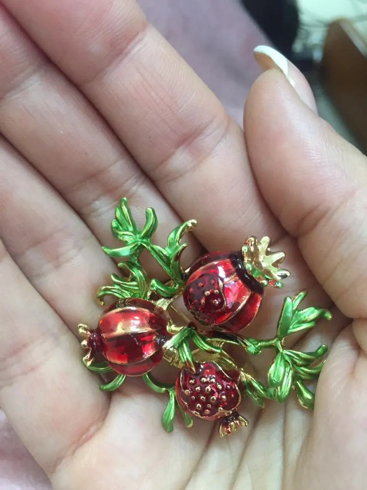 очень красивая брошь, пришла быстро, описание соответствует. на гранатами что то вроде эмали очень красиво