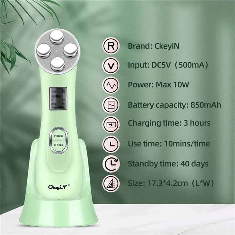 CkeyiN 5 в 1 Электропорация микроток, массажер для лица RF EMS свет...