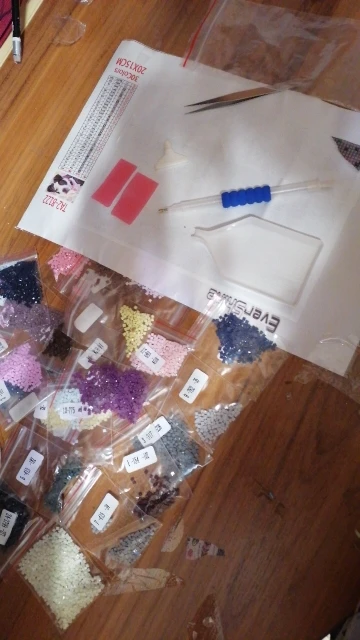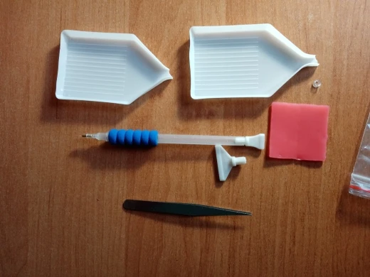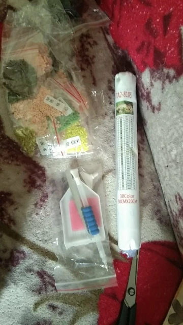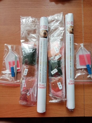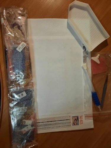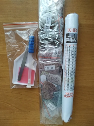 картины хорошо упакованы,намотаны на валик,стразы сразу упакованы по отдельным пакетам и промаркированы.клея положили много.ручка,лоток и пинцет из неочень крепкого материала на первый взгляд,а в остальном все понравилось.имеется небольшой запах рези