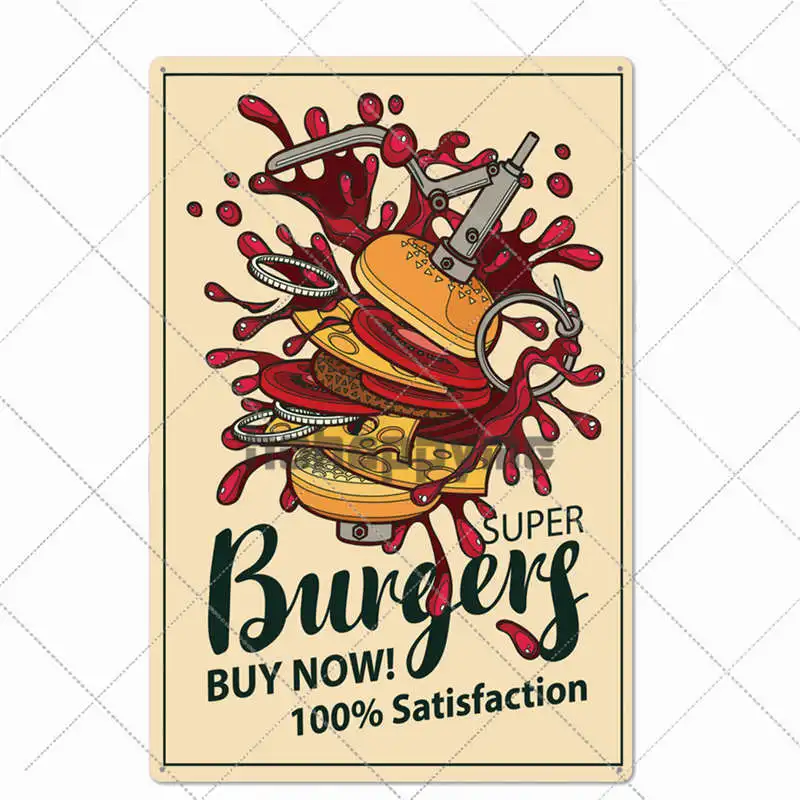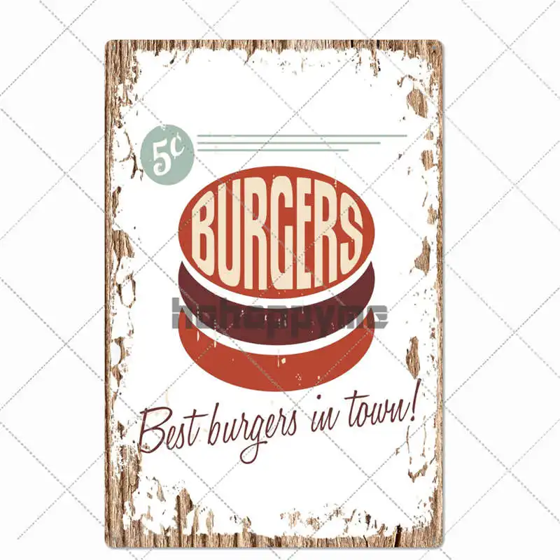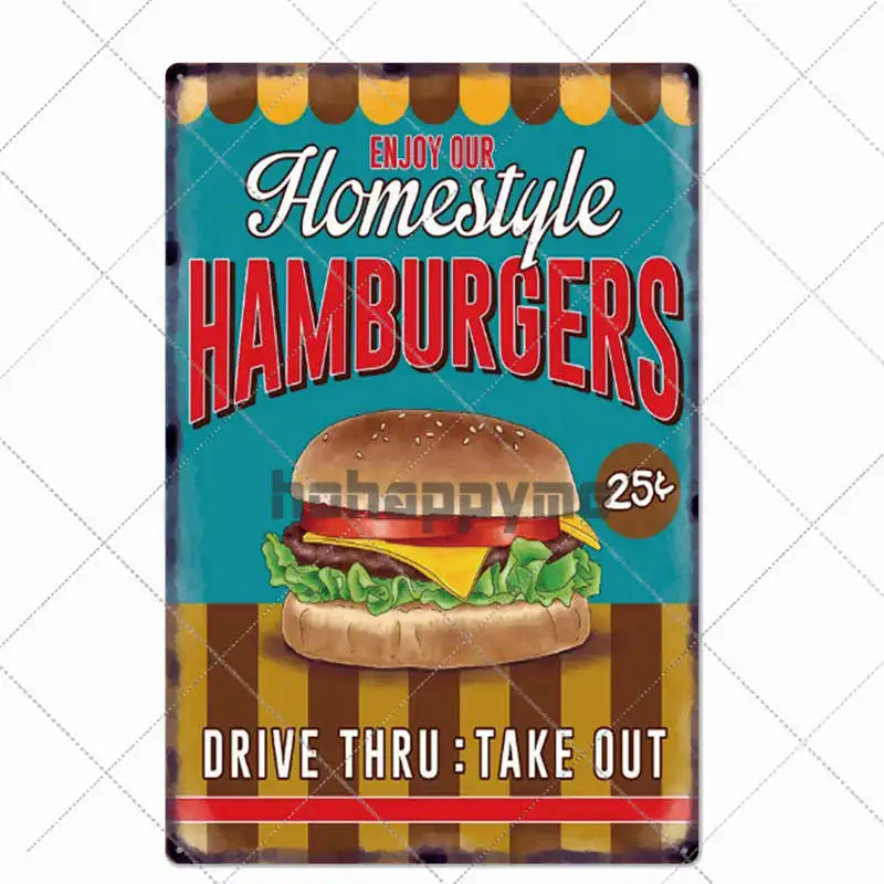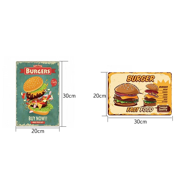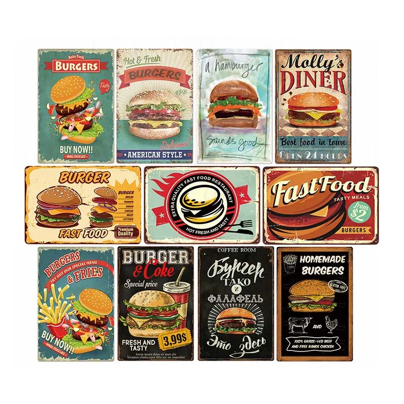 Металлический жестяной знак гамбургер, винтажный постер, табличка для бара фаст-фуд, бар, кухонная настенная тарелка, украшение для дома, 20*30 см