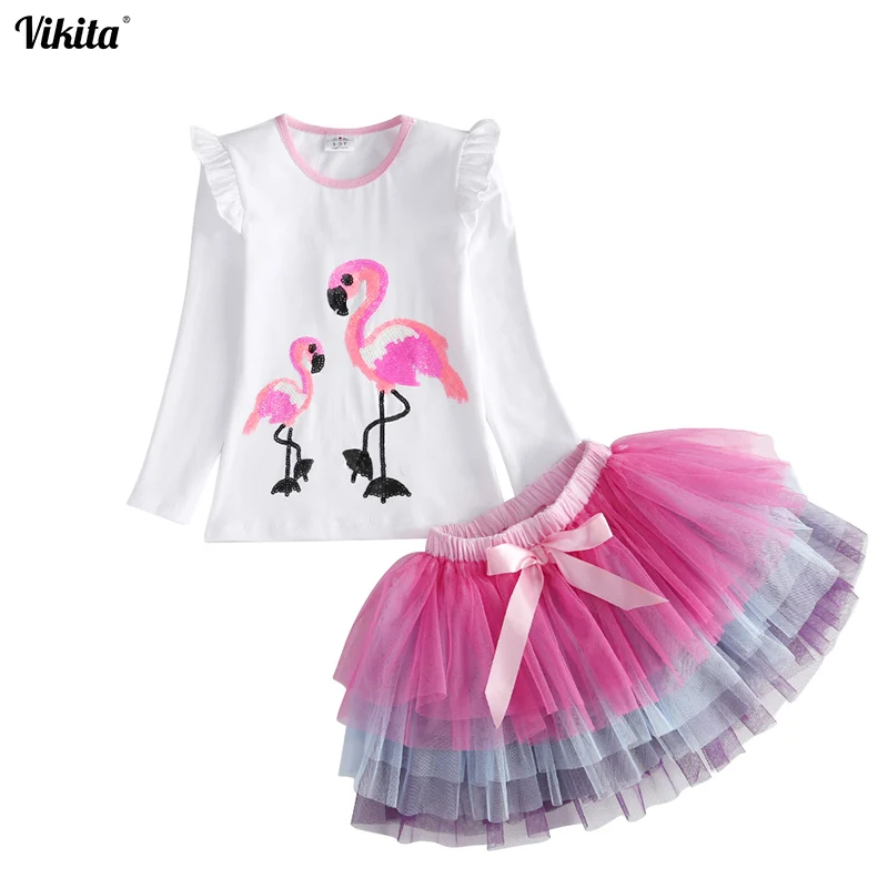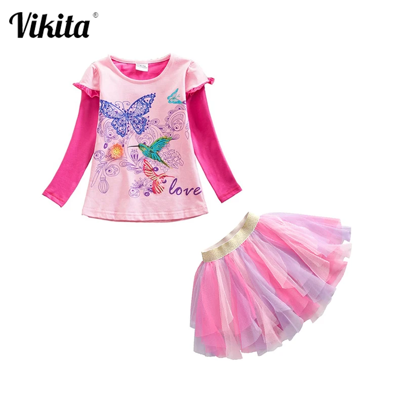 VIKITAкомплекты детской одежды для девочек, хлопковые топы с длинными рукавами + юбка-пачка Детские весенне-Осенние костюмы из 2 предметов одежда для малышей