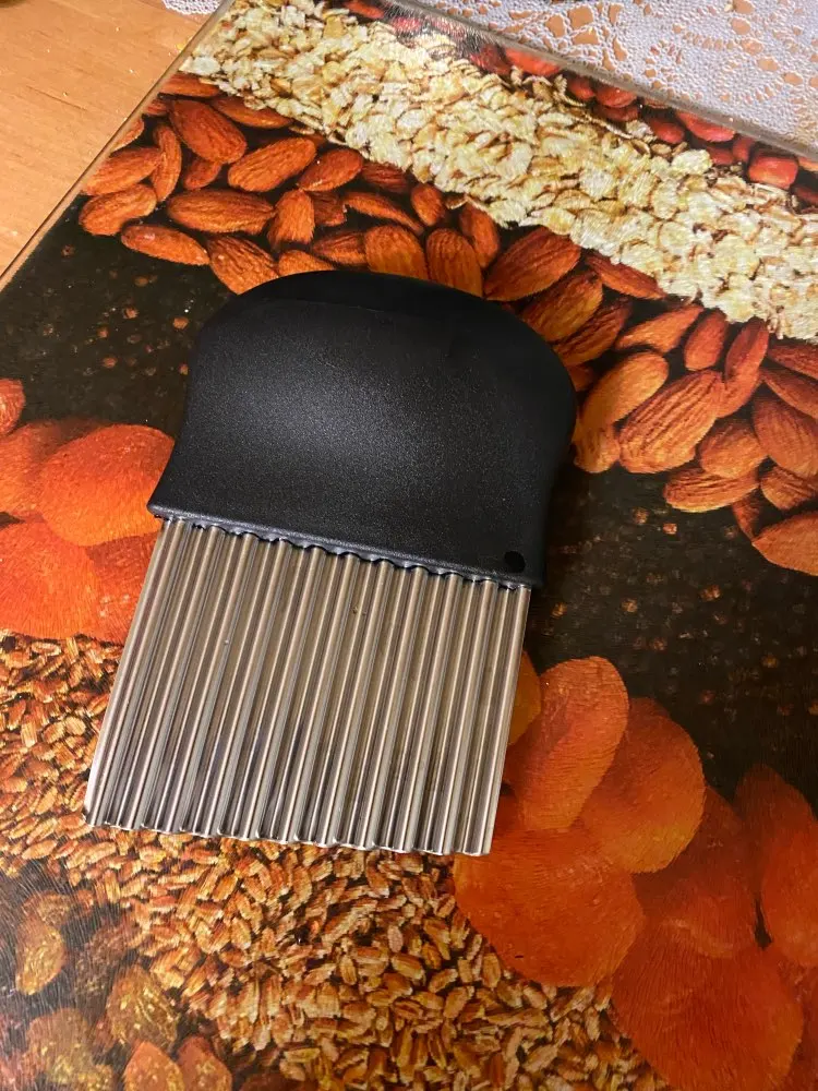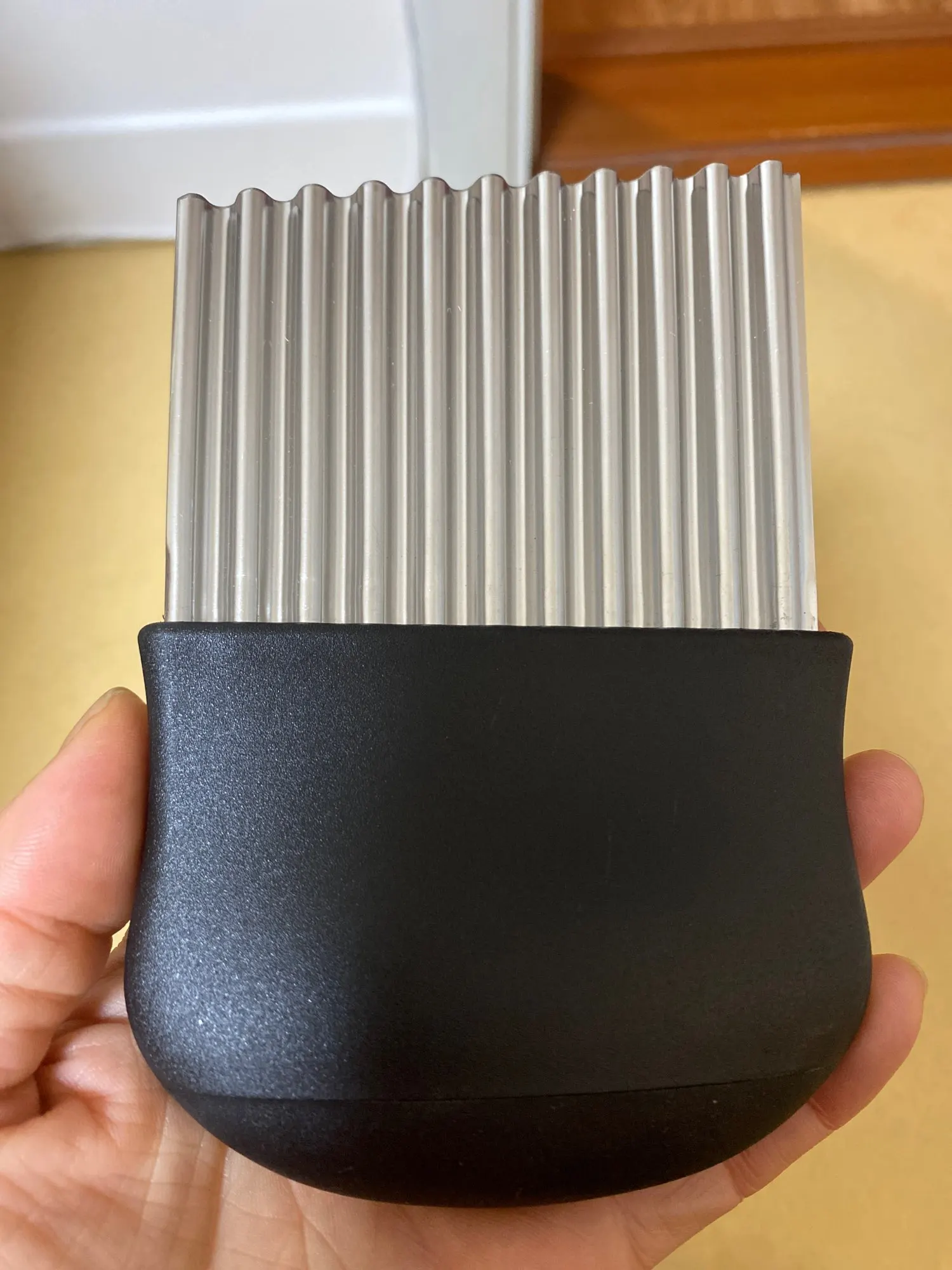 Я использовал его с картошкой, и он очень хорошо режет. Сцепление удобное, и ощущение хорошего качества.