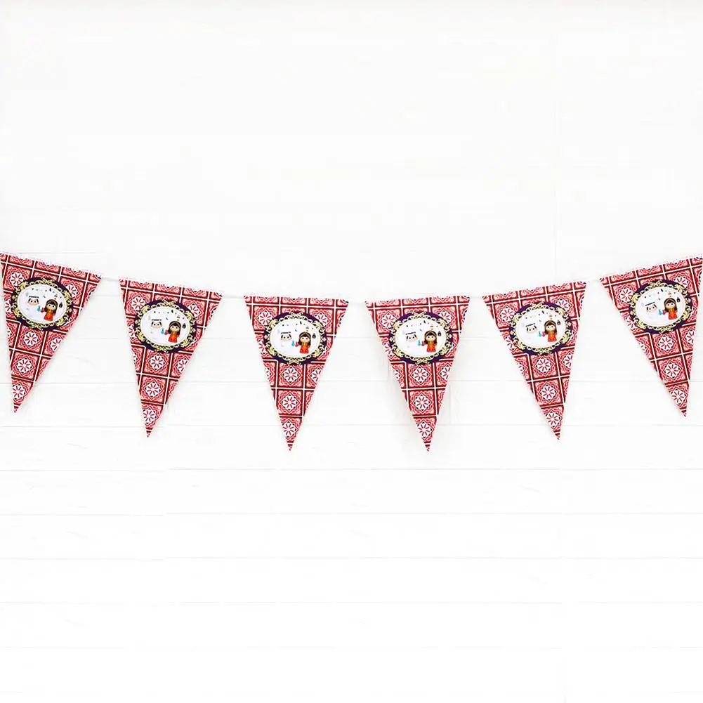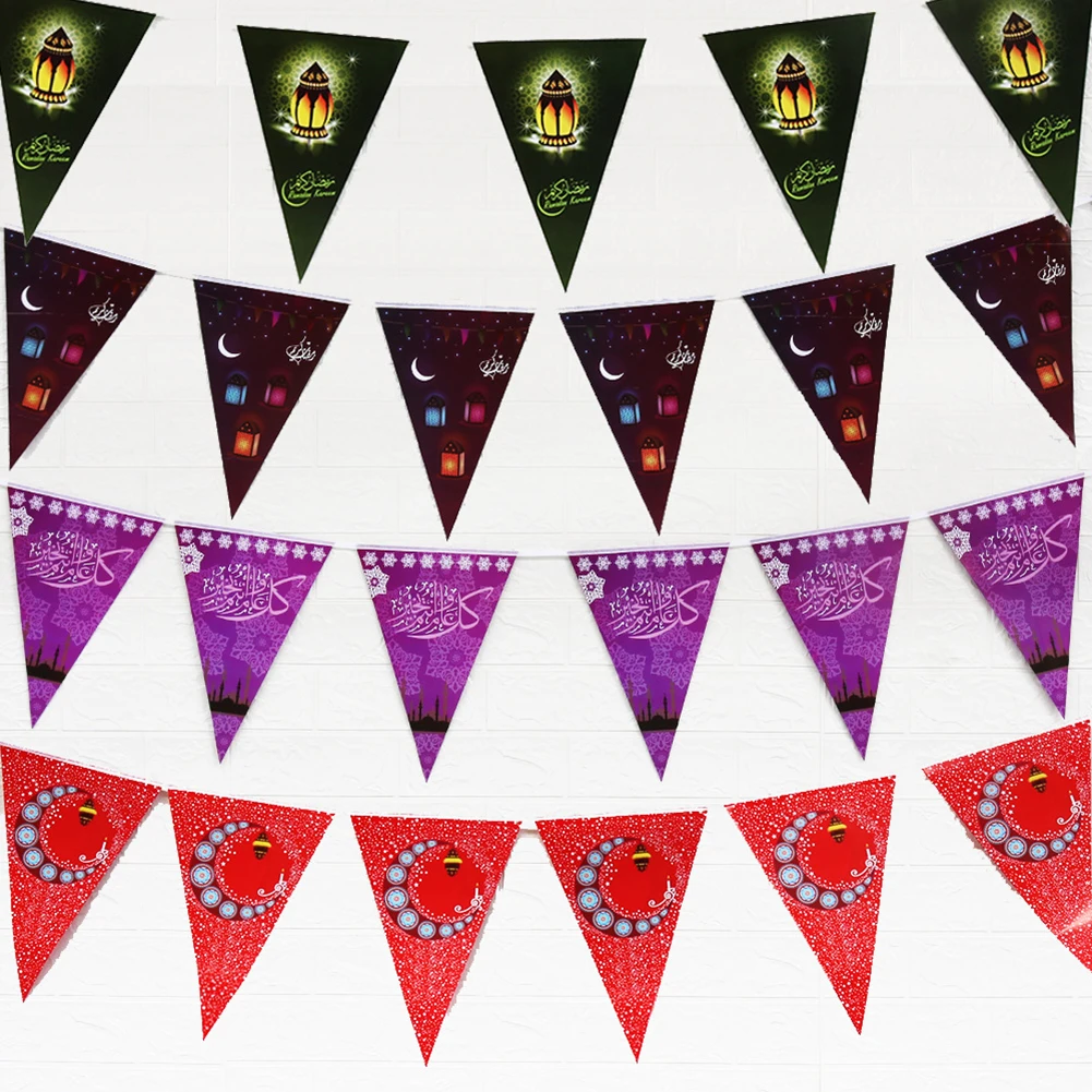5, посылка в комплект входит: 1 комплект Рамадан Мубарак вечерние Треугольники баннер с ручкой в форме рога единорога (10 шт. картонная соединены вместе) с общей длиной около 2,6 м ~ 3 м/8,53-9.84ft. Мы подключили его для вас, и вы можете использовать его сразу после получения.