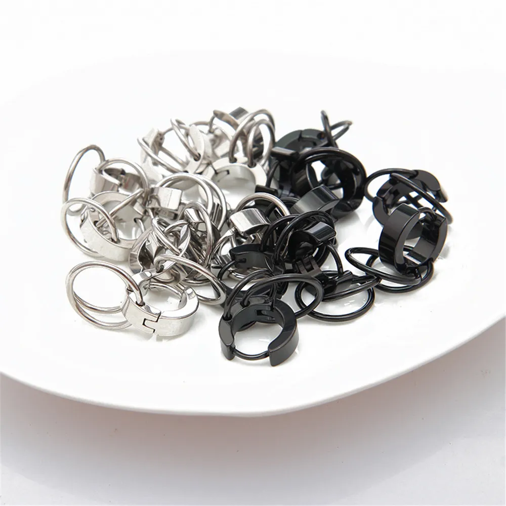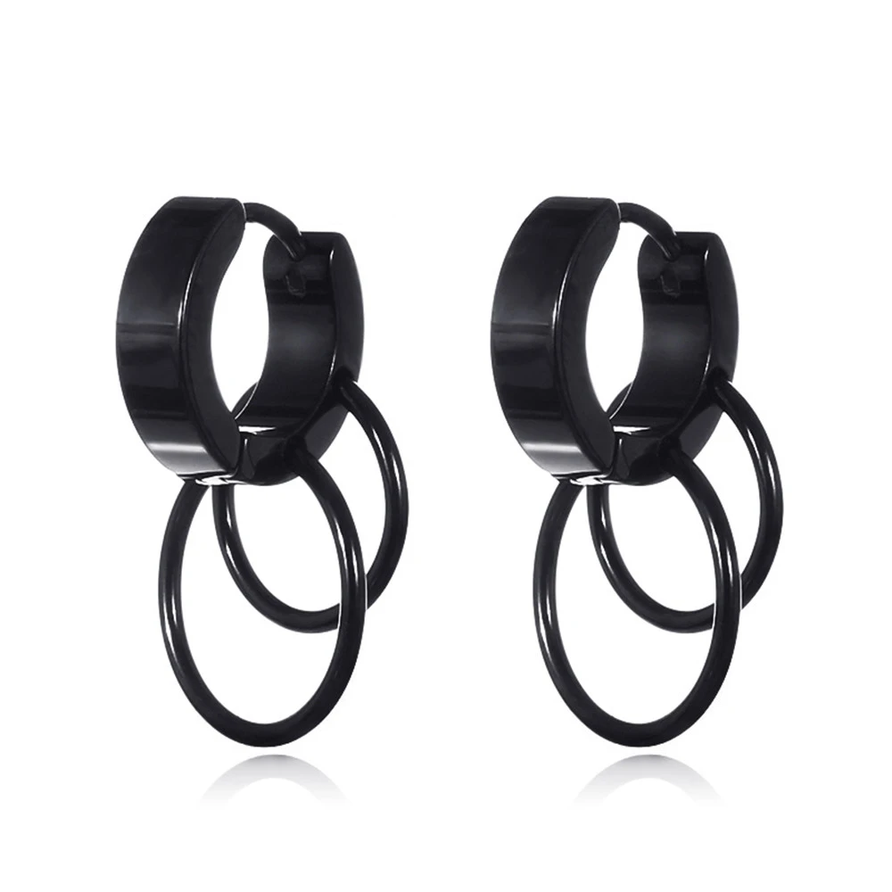 Черные серьги-гвоздики из нержавеющей стали с двумя кругами в стиле панк для мужчин, маленькие аксессуары, модные ювелирные изделия 2020
