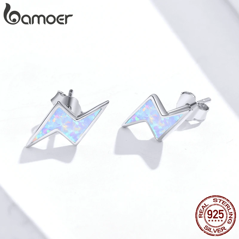 Женские сверкающие серьги-гвоздики bamoer из стерлингового серебра 925 пробы с опалом, ювелирные изделия SCE860