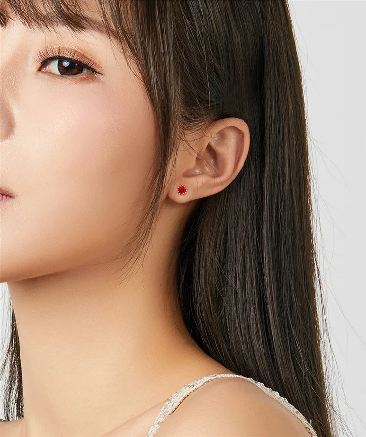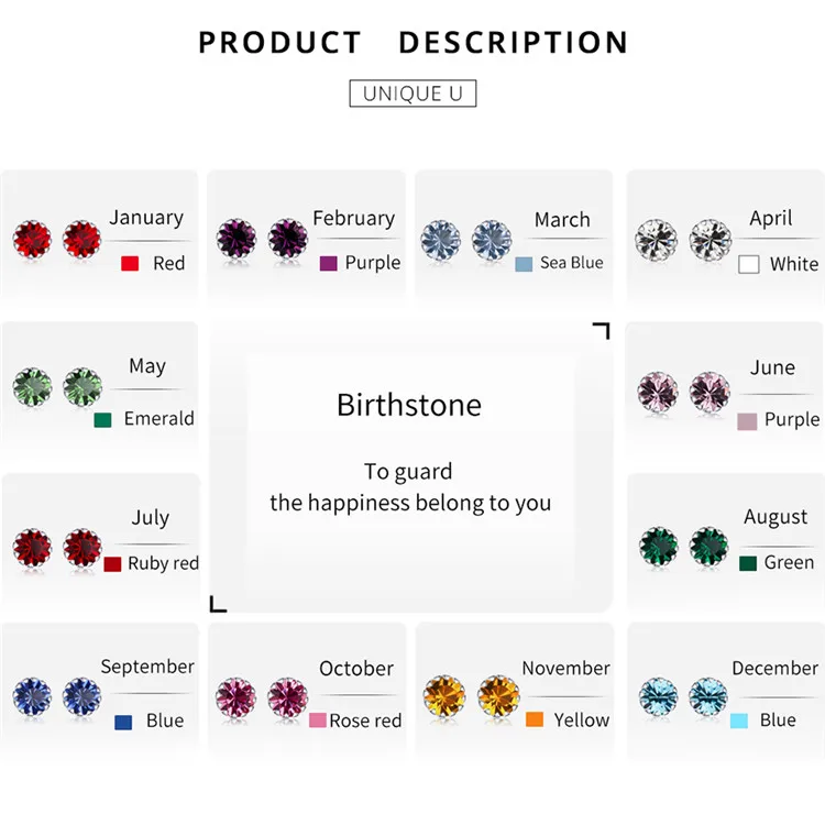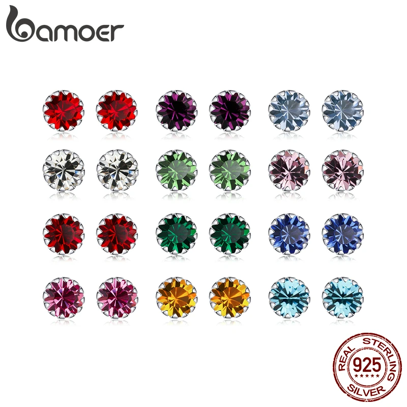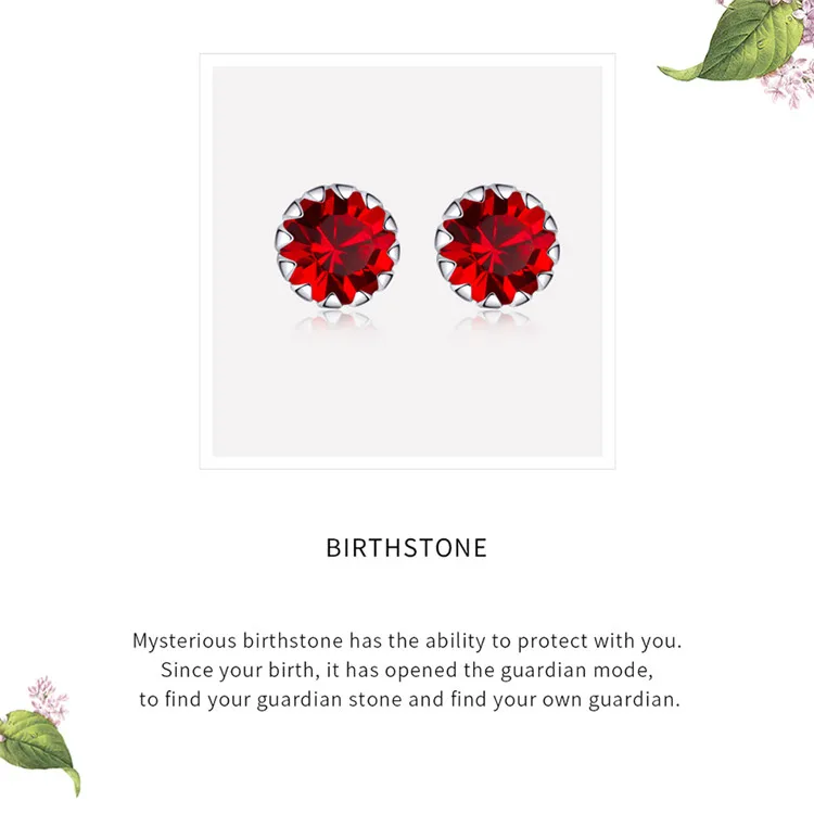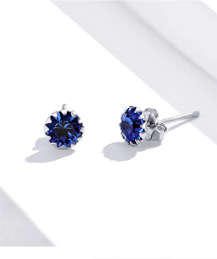 Серьги-гвоздики из серебра камень по дню рождения пробы с фианитами, 925 пробы