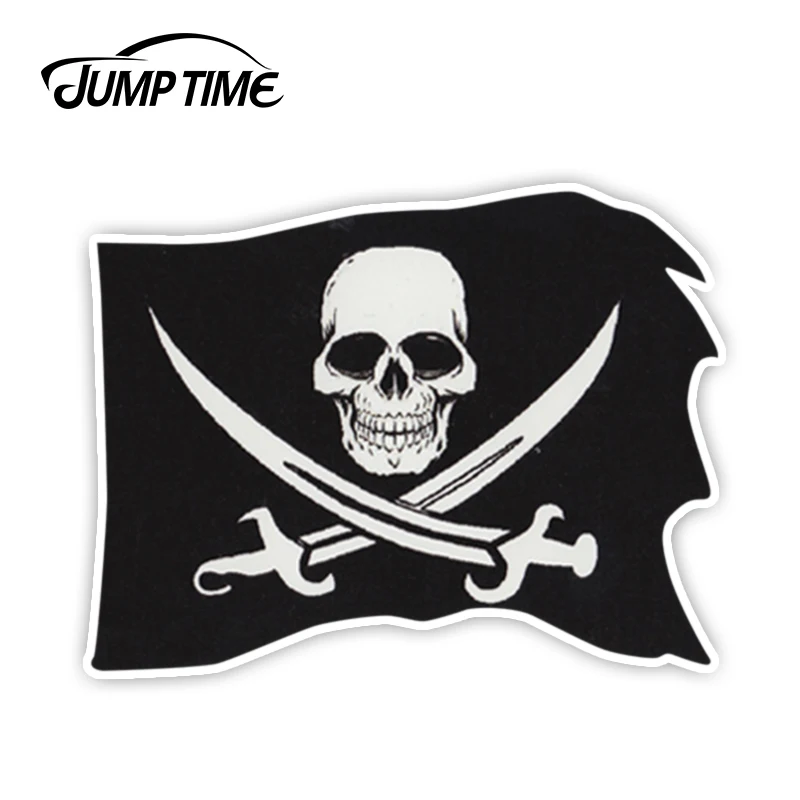 Забавная наклейка JumpTime для бампера, 13 см х 9,9 см, с пиратским флагом, черепом и скрещенными костями, мечами, для автомобиля, грузовика, окна, автомобиля, аксессуары