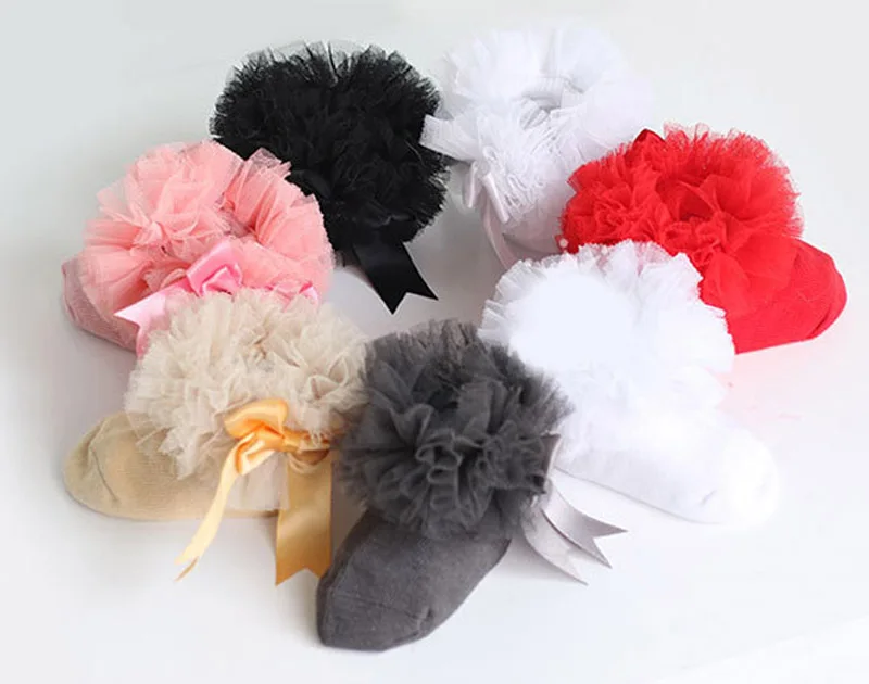 Весенне-летние детские носки принцессы для девочек, популярные носки для новорожденных девочек с бантом, кружевные носки с рюшами и рюшами, черные, белые, розовые